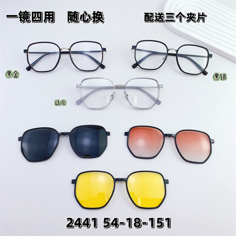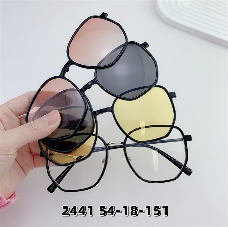 Оправа гибридная, TR90+металл, с 3-мя солнцезащитными насадками на защёлке SANTA 2441