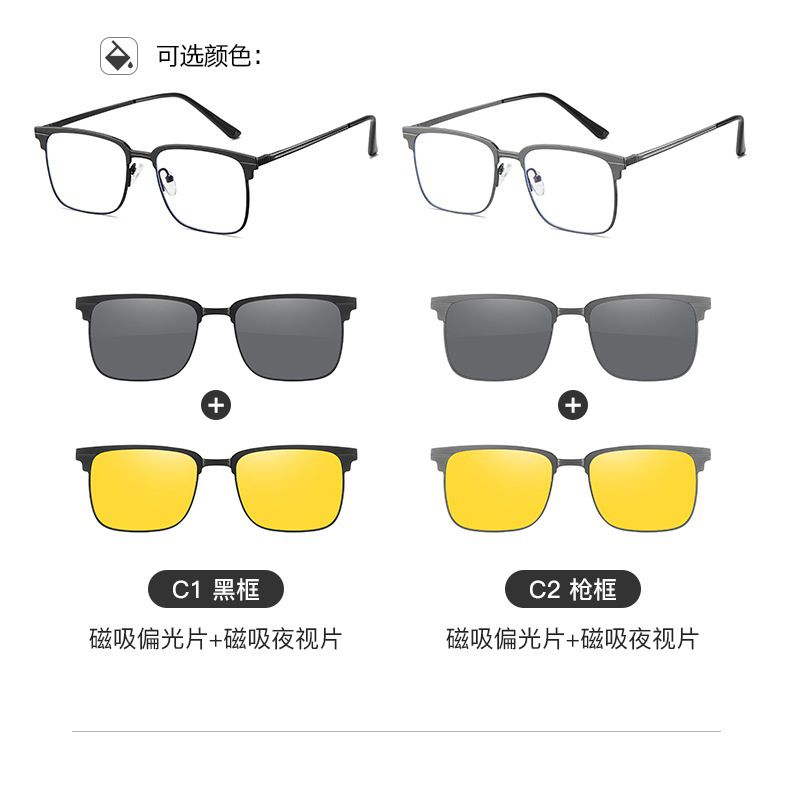 Оправа металлическая с защитой от синего света + 2 магнитные солнцезащитные насадки (клипон) 7026-GT