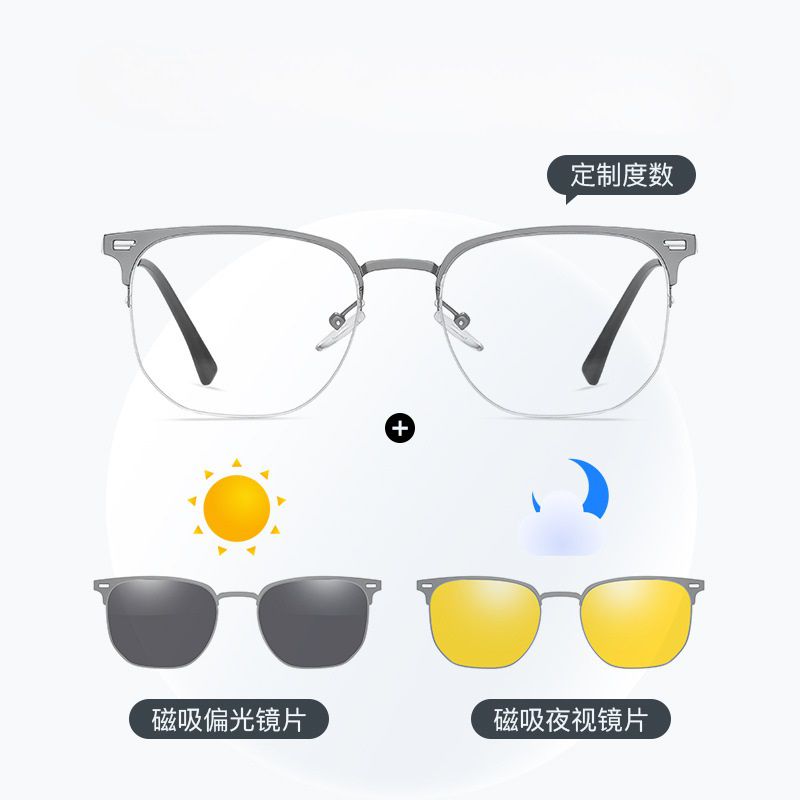 Оправа металлическая с защитой от синего света + 2 магнитные солнцезащитные насадки (клипон) 7603-GT