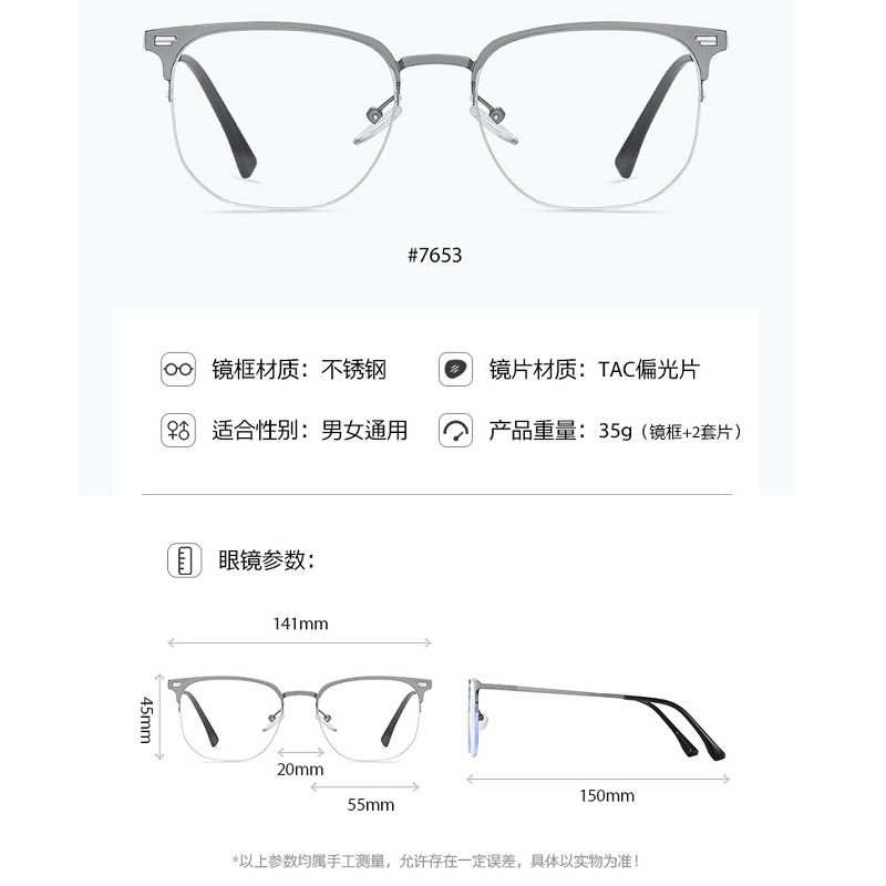 Оправа металлическая с защитой от синего света + 2 магнитные солнцезащитные насадки (клипон) 7653-GT