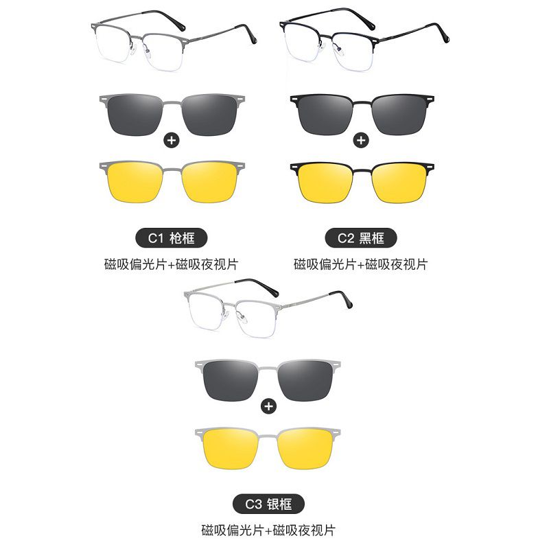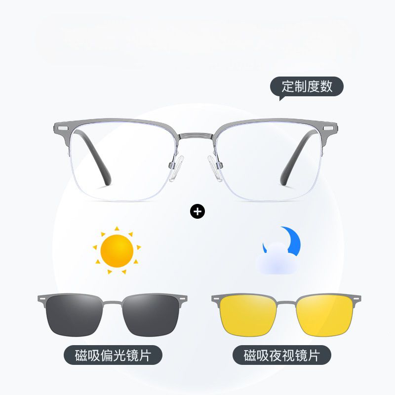Оправа металлическая с защитой от синего света + 2 магнитные солнцезащитные насадки (клипон) 7603-GT