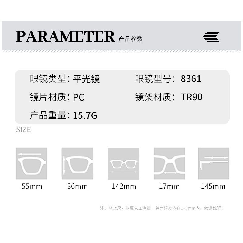 - Размер: ширина линзы - 55 мм, мост - 17 мм, длина заушника - 145 мм