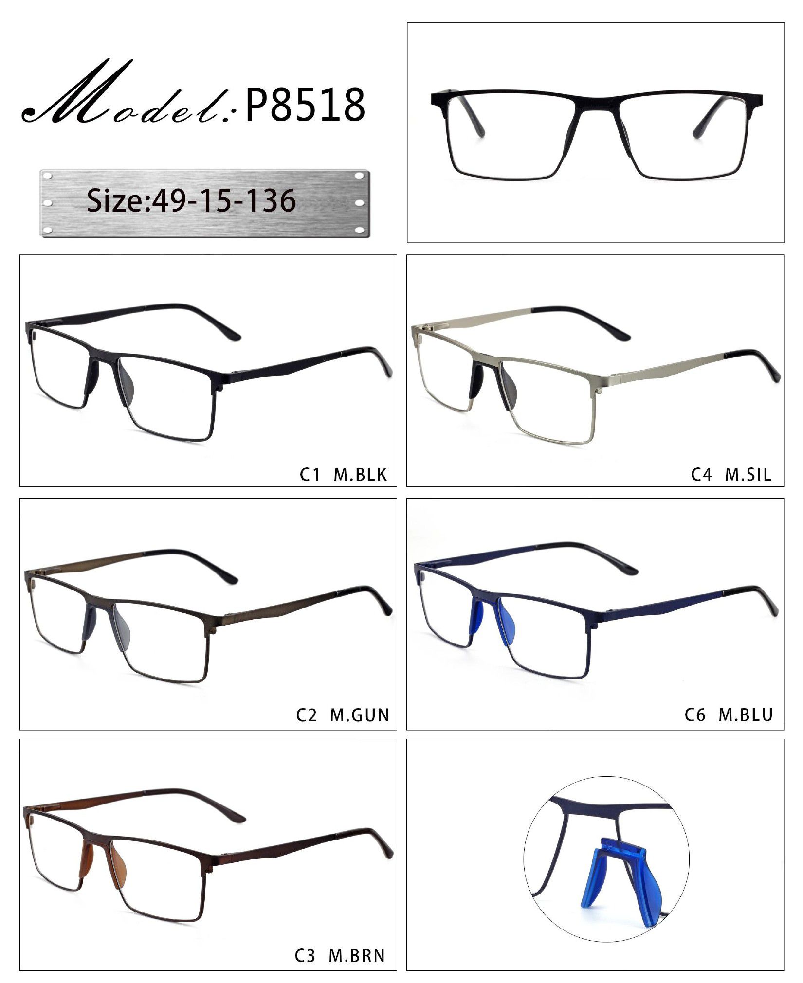 Оправа металлическая с мягким носоупором и флексом 8518-DA