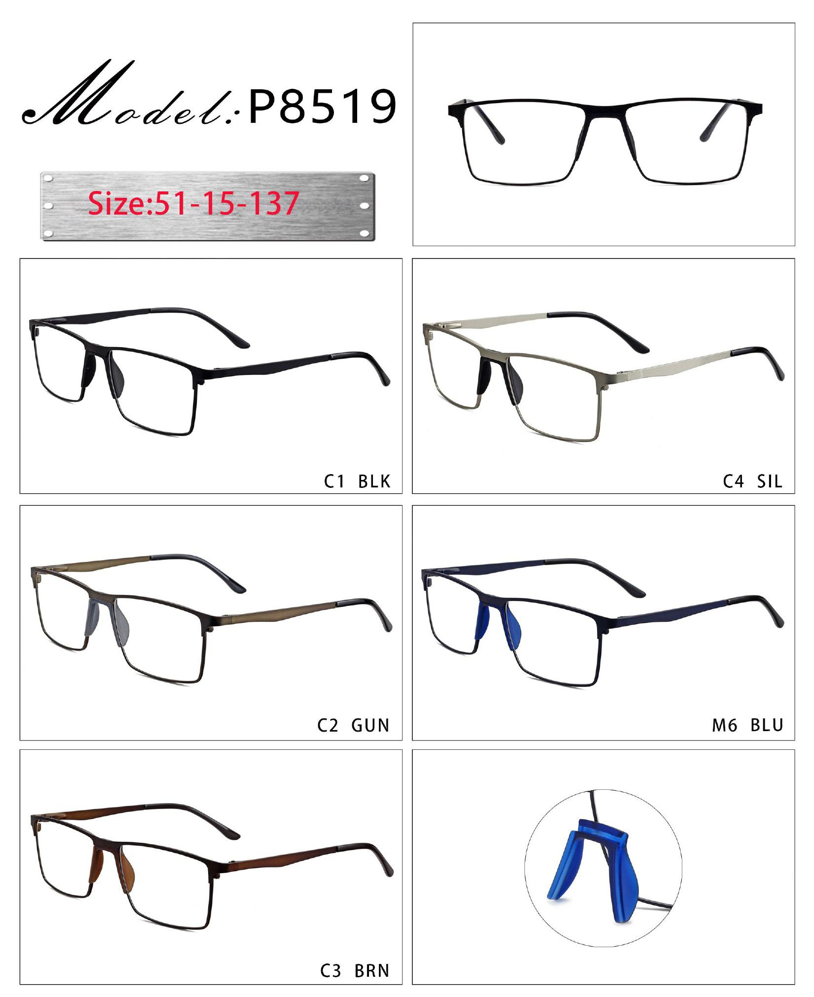 Оправа металлическая с мягким носоупором и флексом 8519-DA