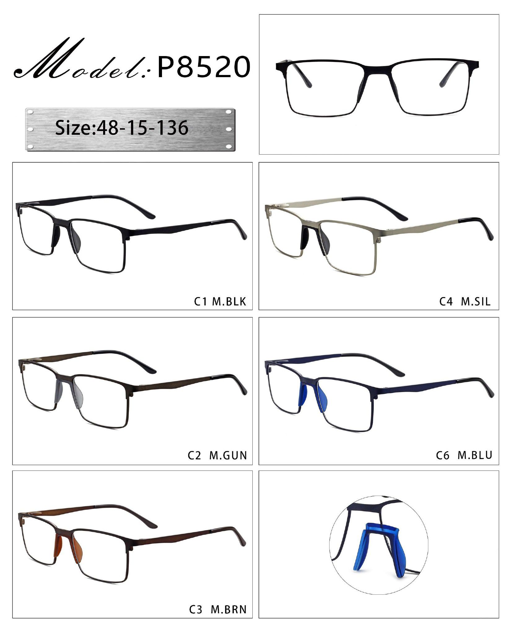 Оправа металлическая с мягким носоупором и флексом 8520-DA