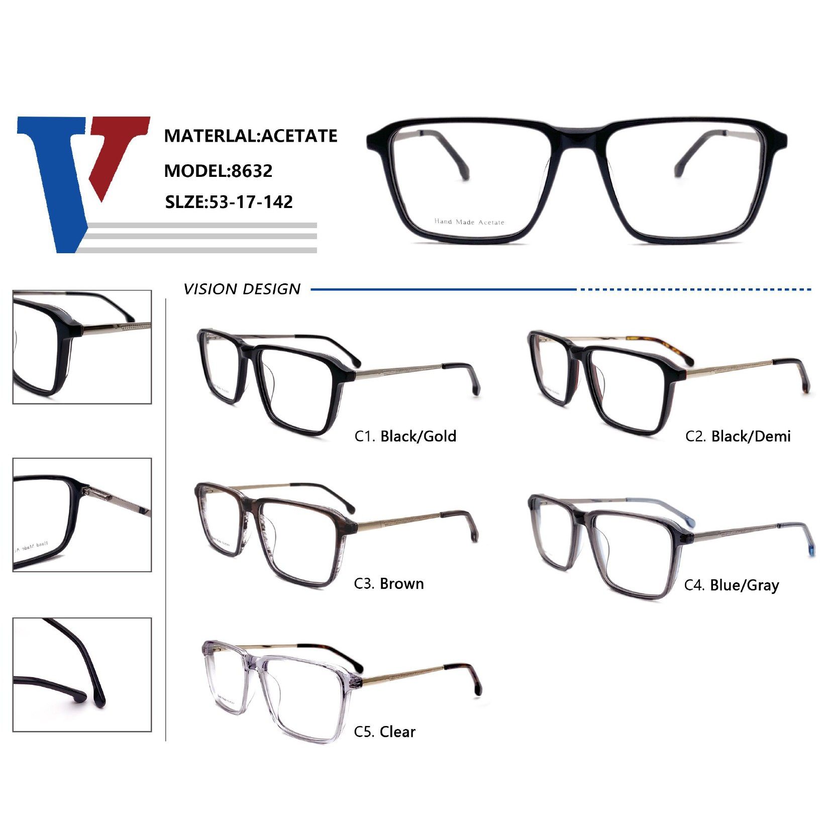 Оправа пластиковая из ацетата + металл с флексом 8632-DA 8632-DA C2 - ¥ 32.00 В наличии