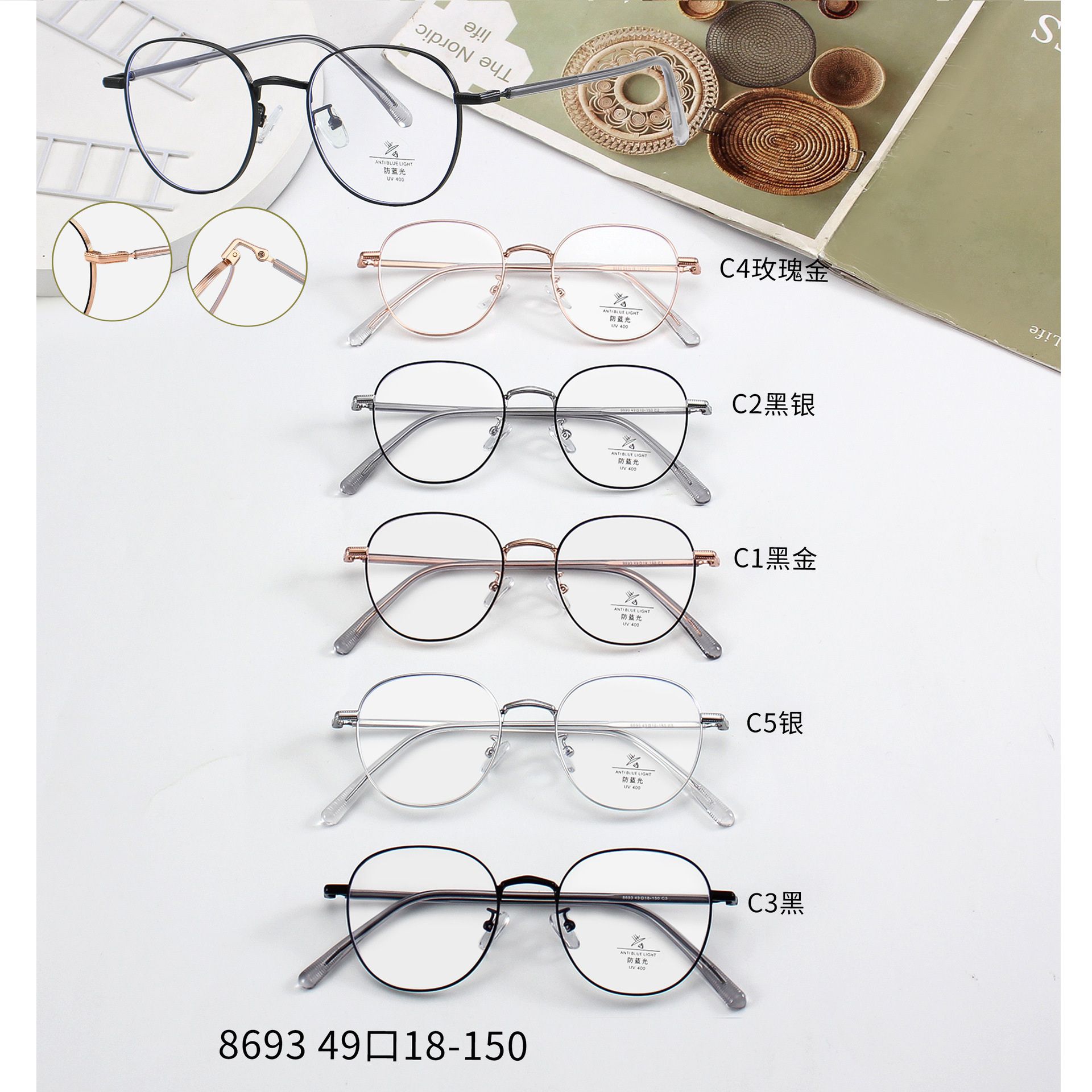 Оправа металлическая с линзами Blue Ray Cut MAMO 8693
