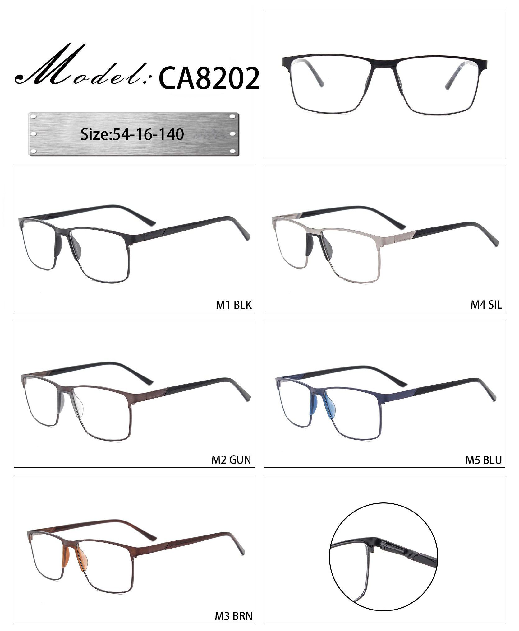 Оправа металлическая с мягким носоупором и флексом CA8202-DA CA8202-DA C5 - ¥ 28.00 В наличии