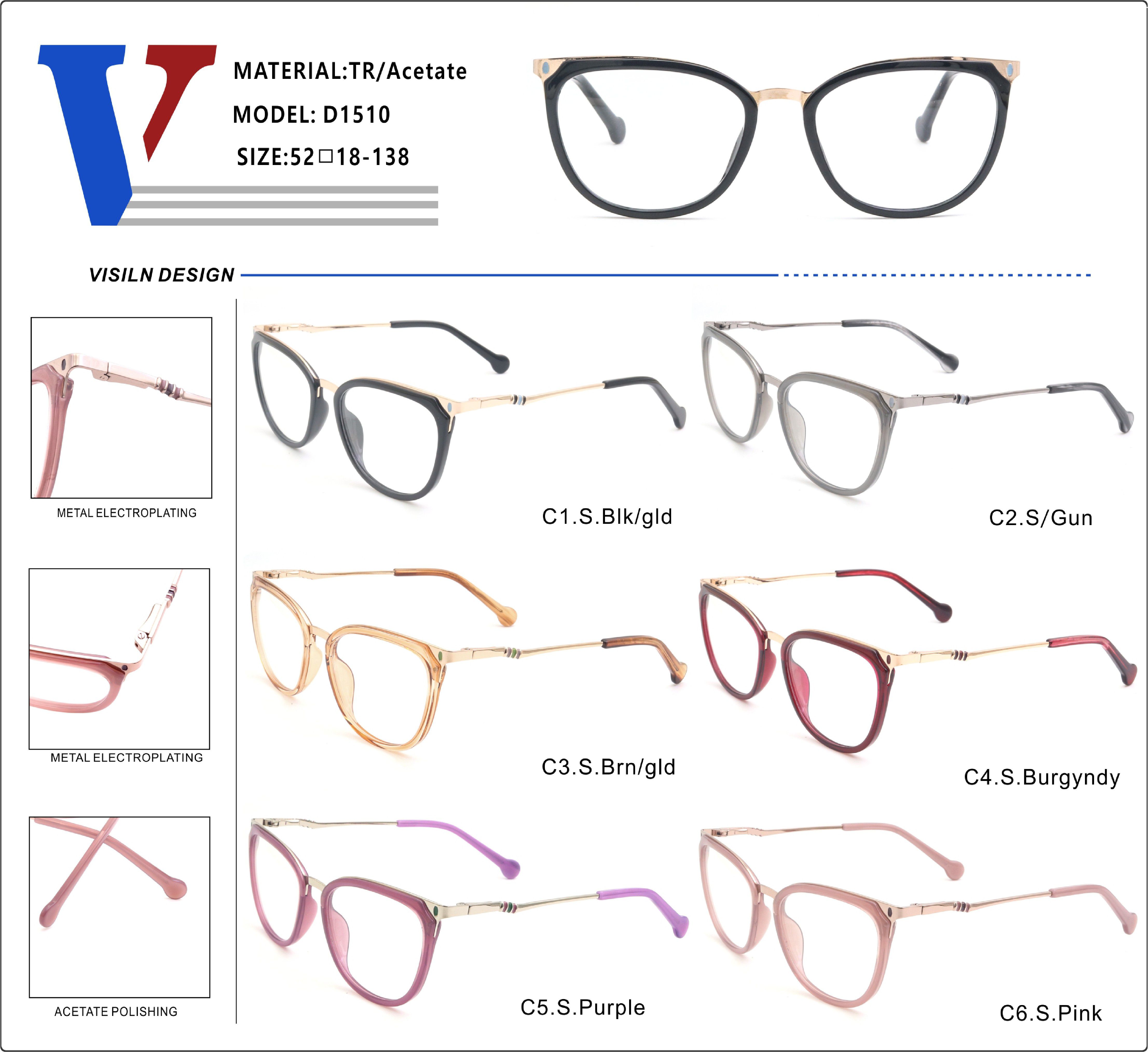 Оправа пластиковая из ацетата TR90 + металл с флексом D1510-DA