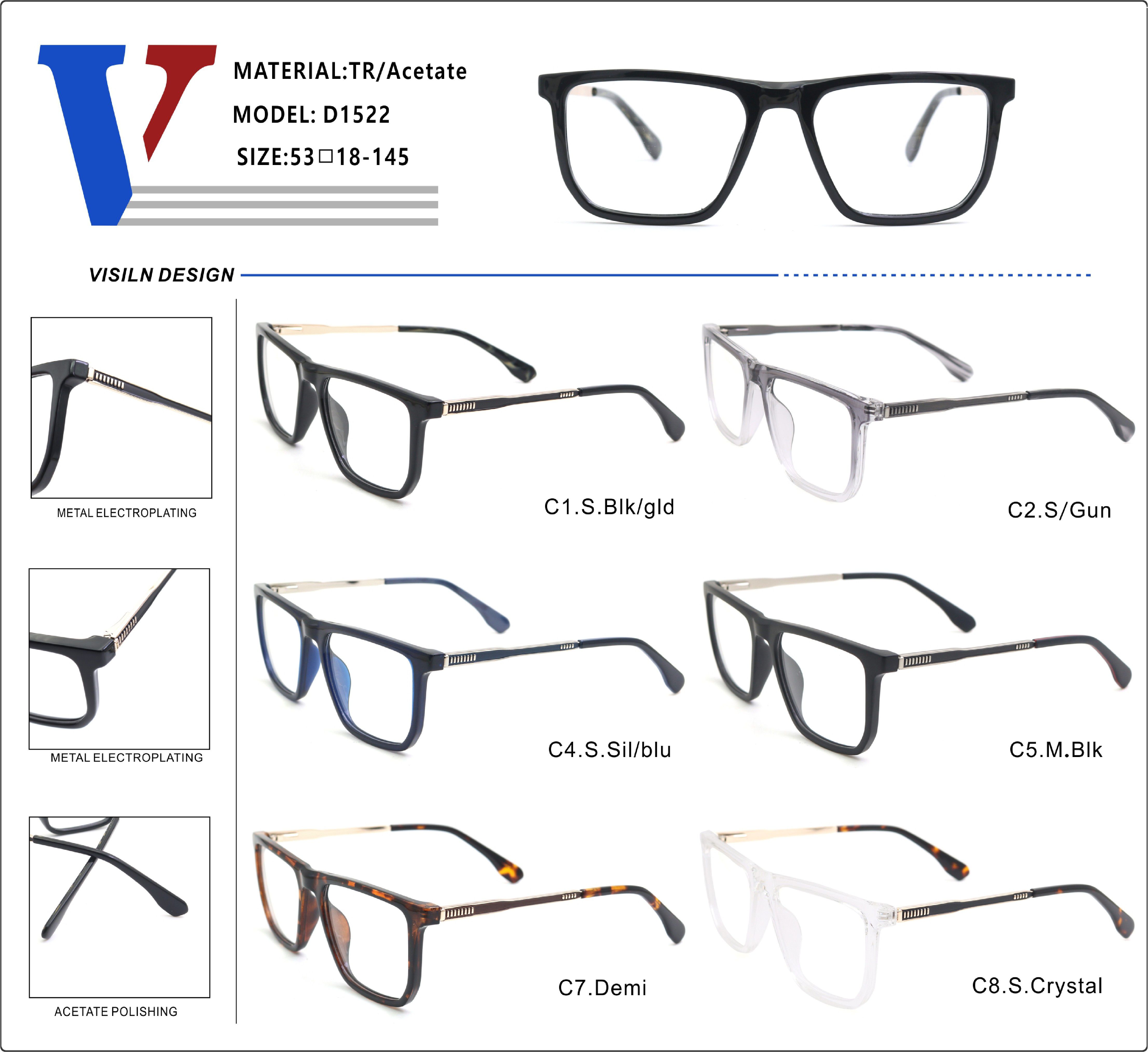 Оправа пластиковая из ацетата TR90 + металл с флексом D1522-DA