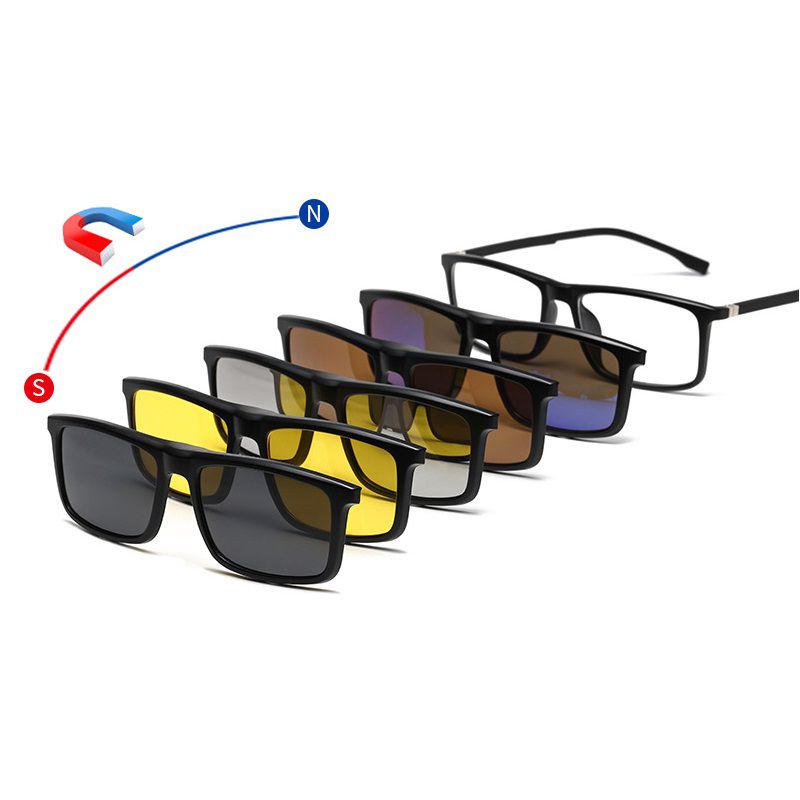 - Комплект: оправа пластиковая + 5 солнцезащитных насадок + кожаная сумка