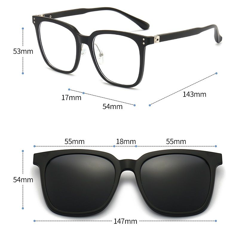 Оправа пластиковая TR90/PC + комплект из 5 поляризационных солнцезащитных насадок (клипон) на магните + кожаная сумка El Dorado EL5501A
