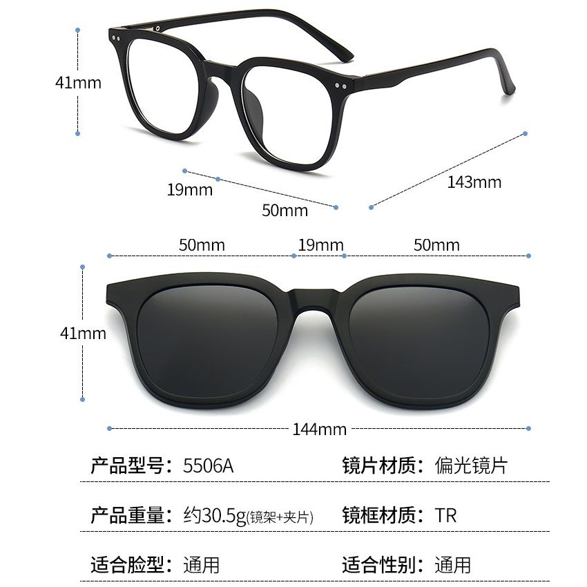 Оправа пластиковая TR90/PC + комплект из 5 поляризационных солнцезащитных насадок (клипон) на магните + кожаная сумка El Dorado EL5506A