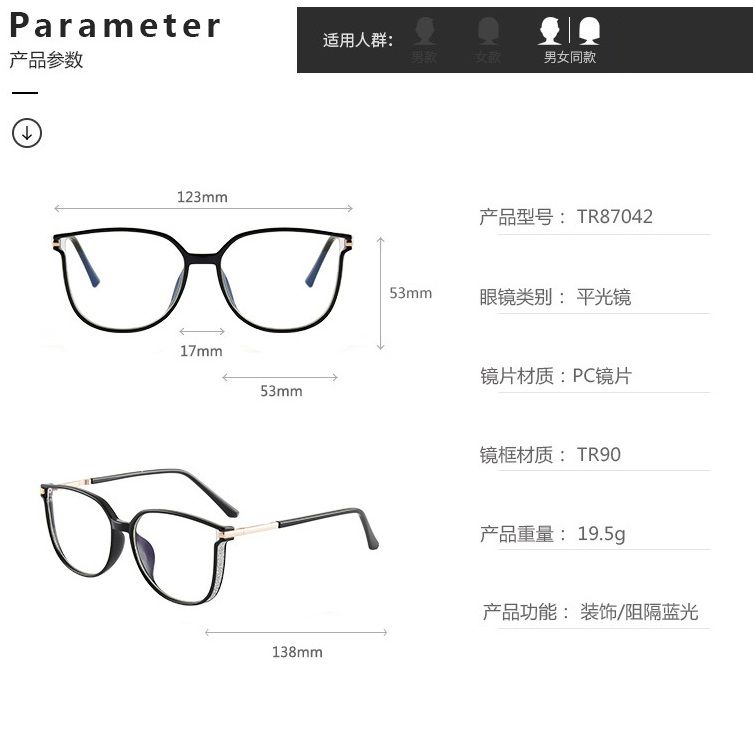 - Материал рамки: пластик TR90