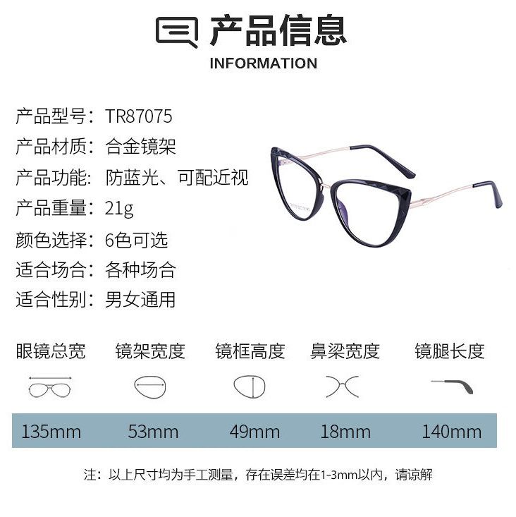 Оправа для очков пластиковая TR90 с защитой от синего света, с флексом FA87075