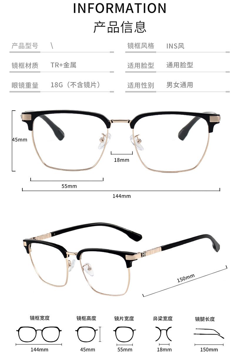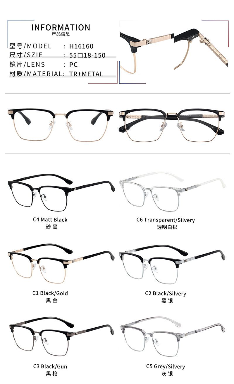 - Материал оправы: пластик TR90 + металл
