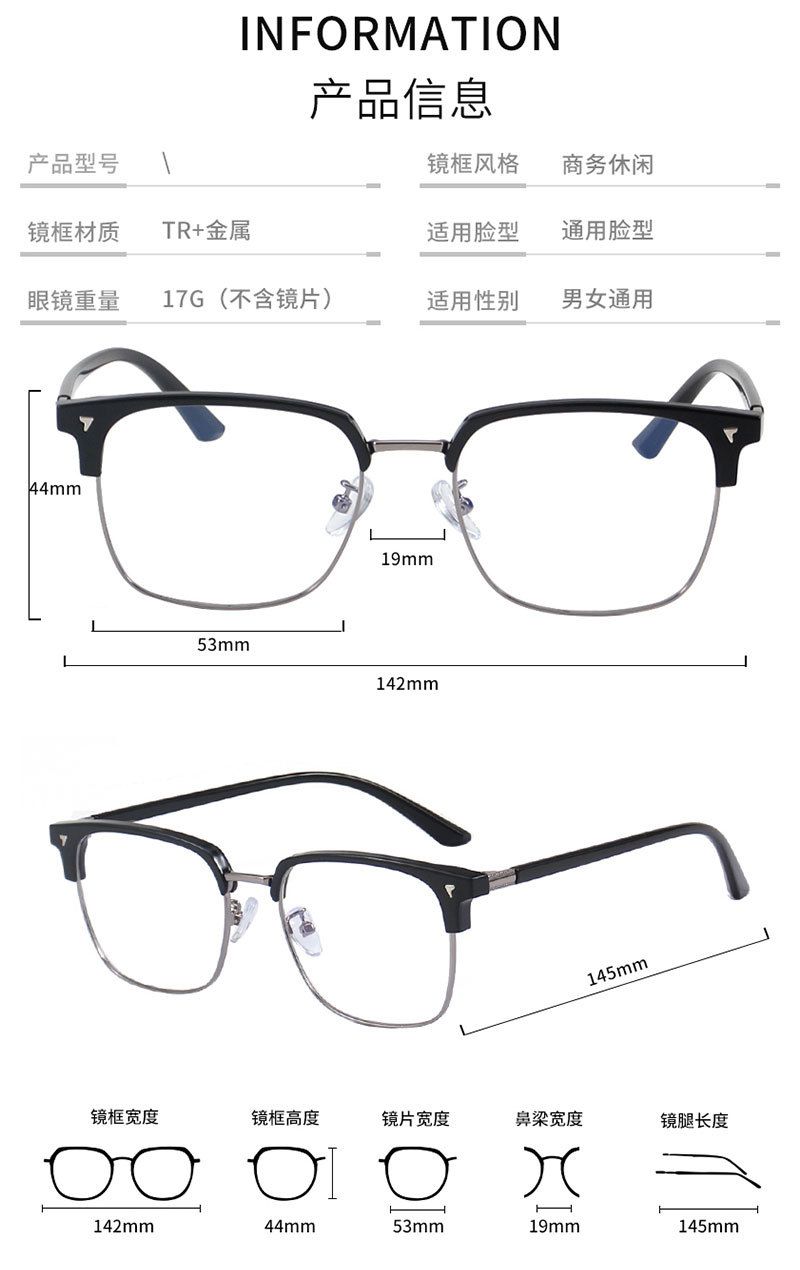 - Материал оправы: металл + пластик TR90