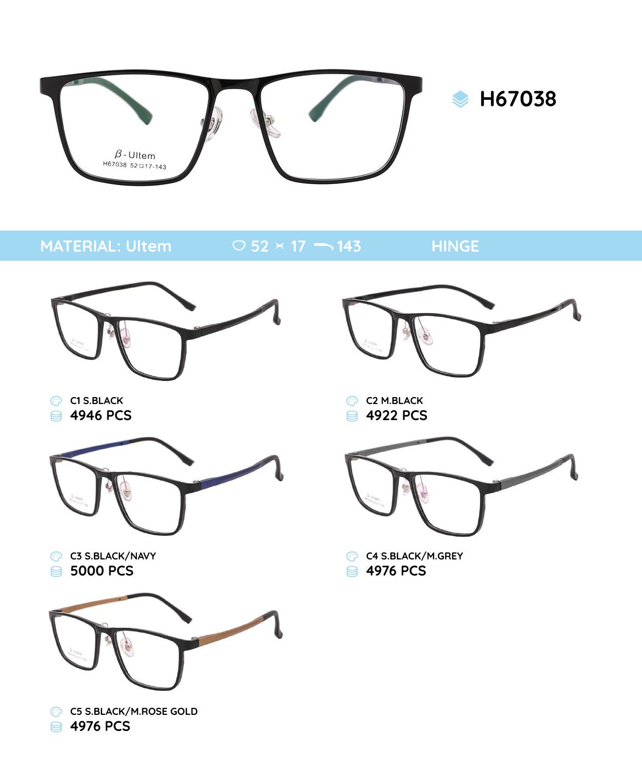 Оправа для очков пластиковая из материала Ultem H67038