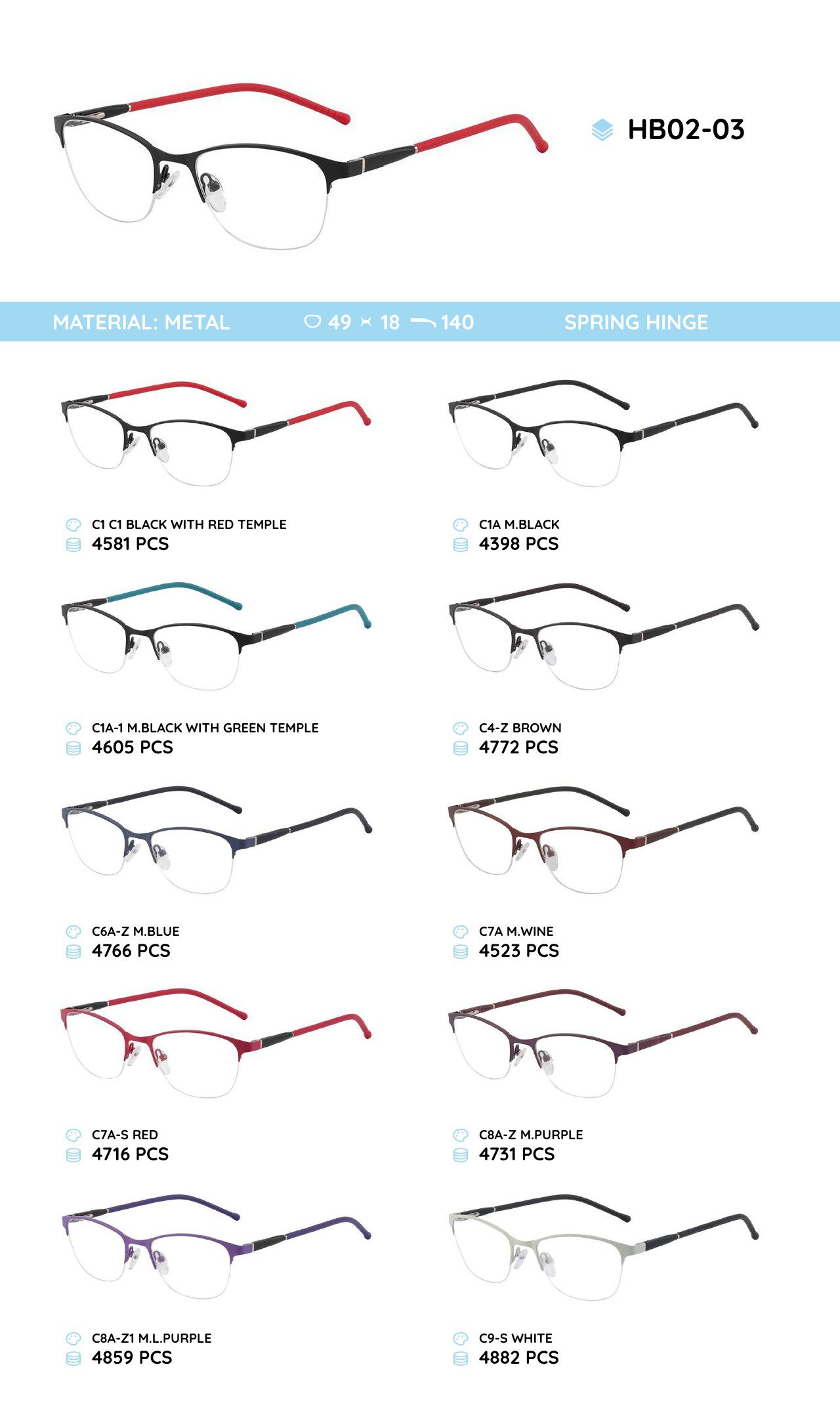 Металлическая оправа с дужками из материала TR-90 HB02-03
