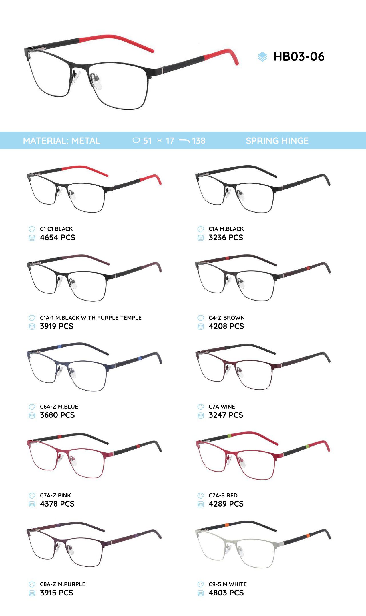 Металлическая оправа с дужками из материала TR-90 HB03-06