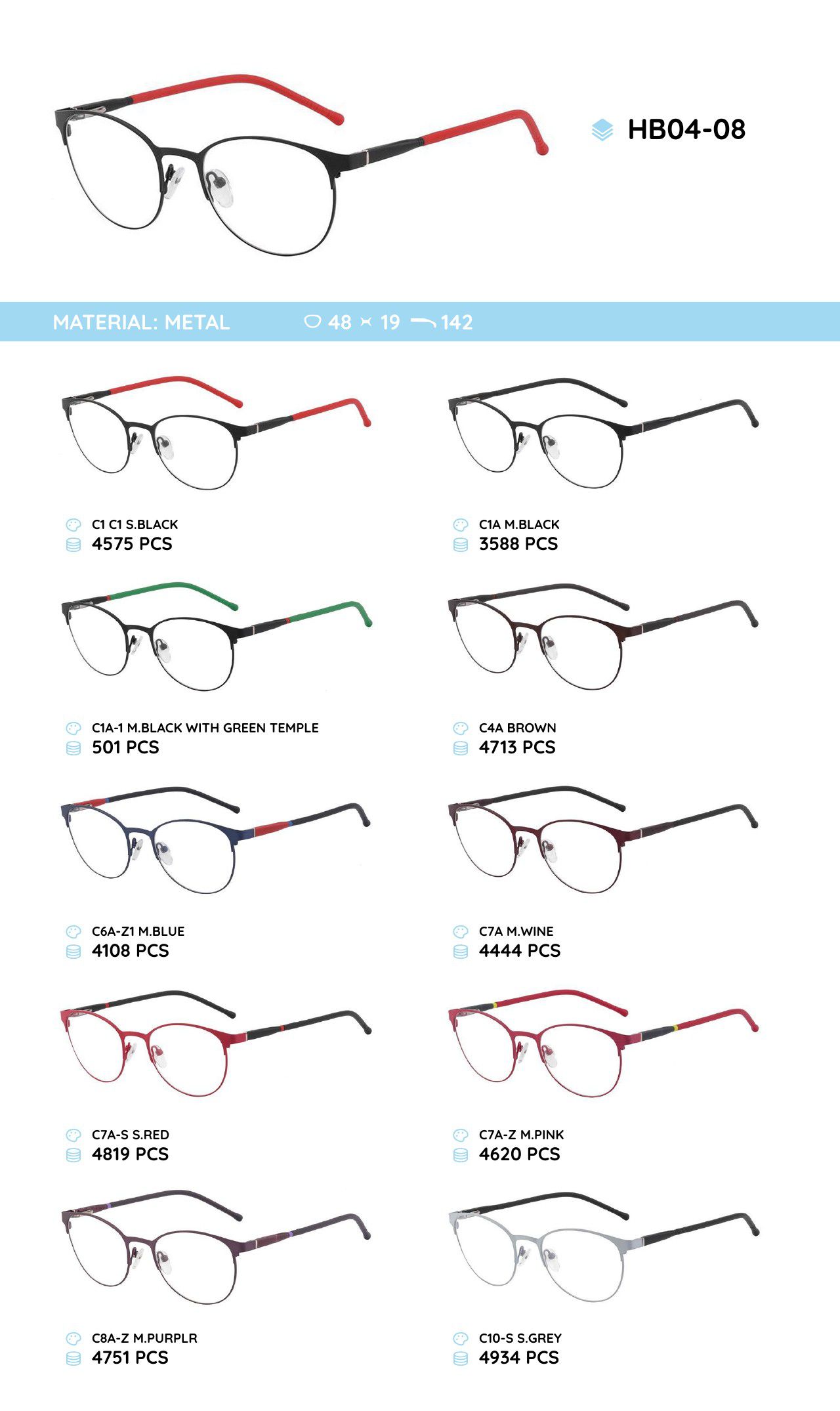 Металлическая оправа с дужками из материала TR-90 HB04-08