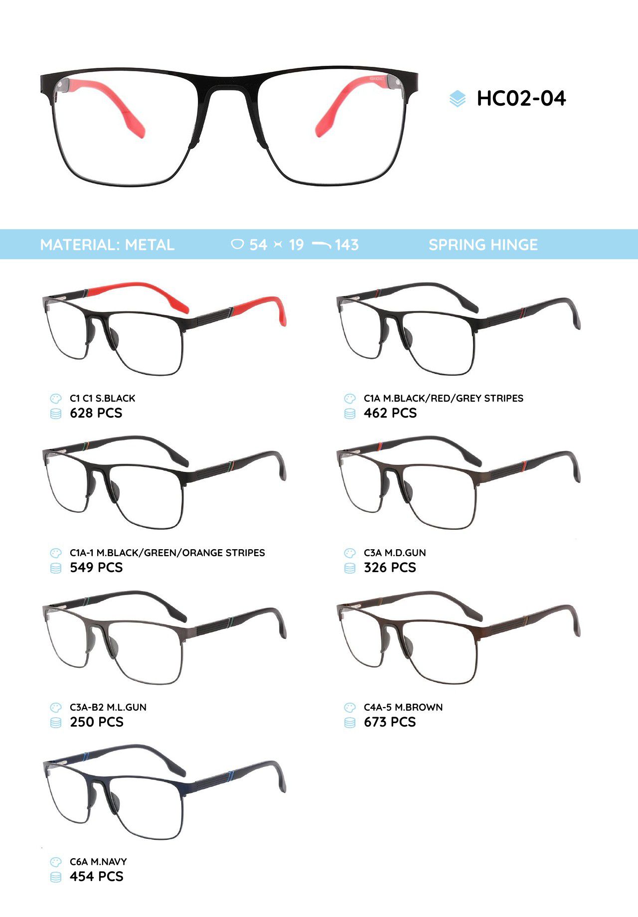 Металлическая оправа с дужками из материала TR-90 HC02-04