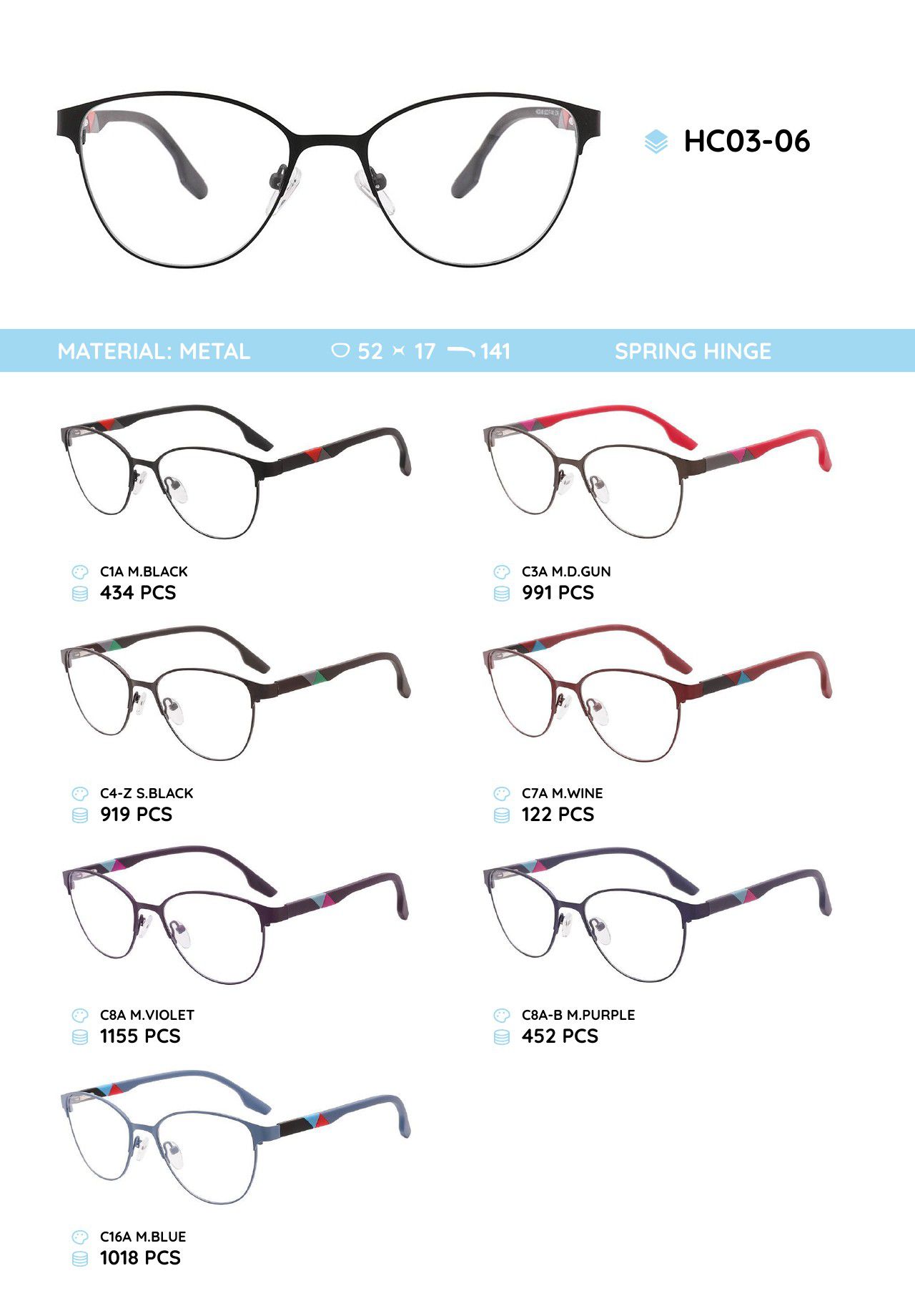 Металлическая оправа с дужками из материала TR-90 HC03-06