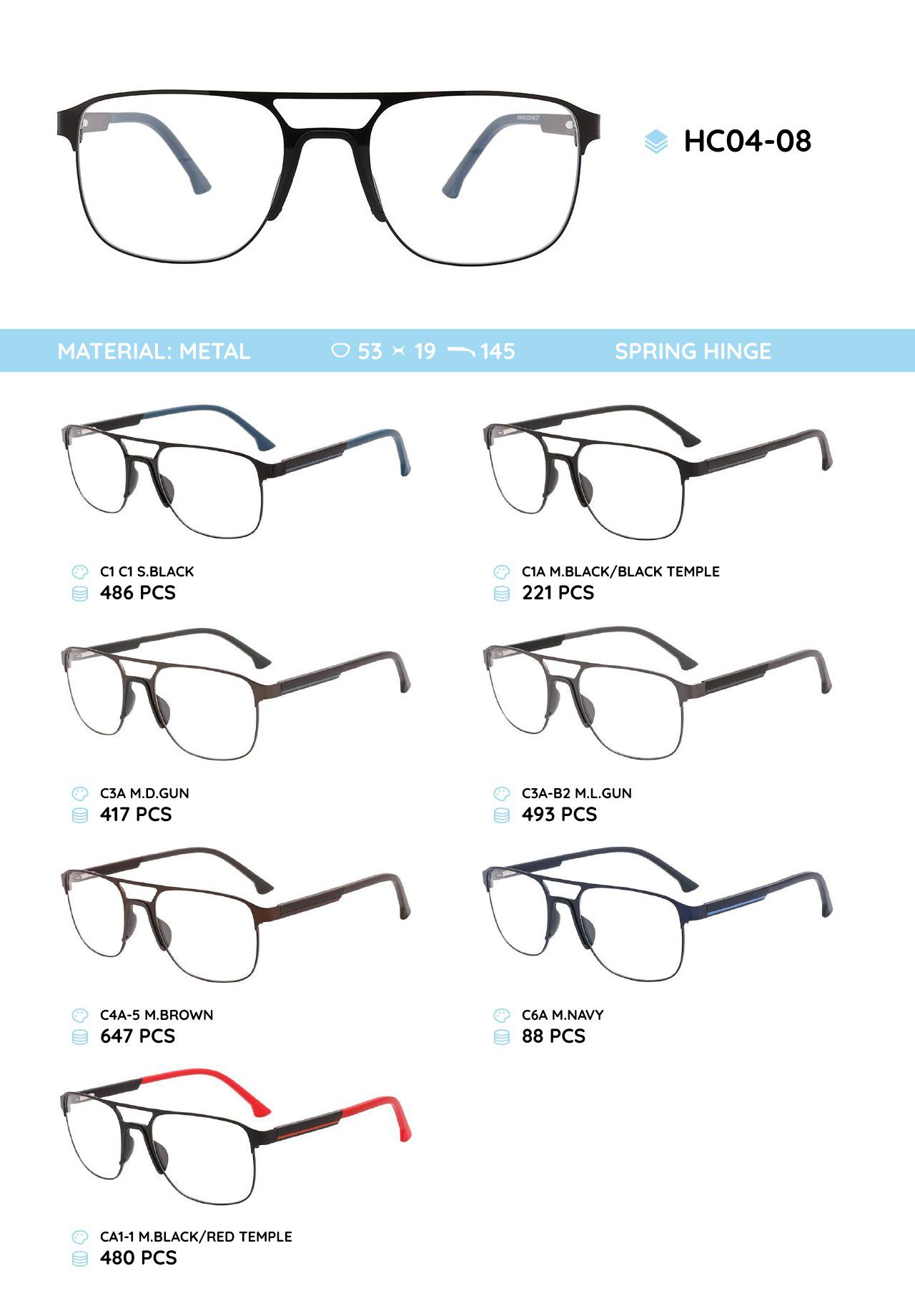 Металлическая оправа с дужками из материала TR-90 HC04-08