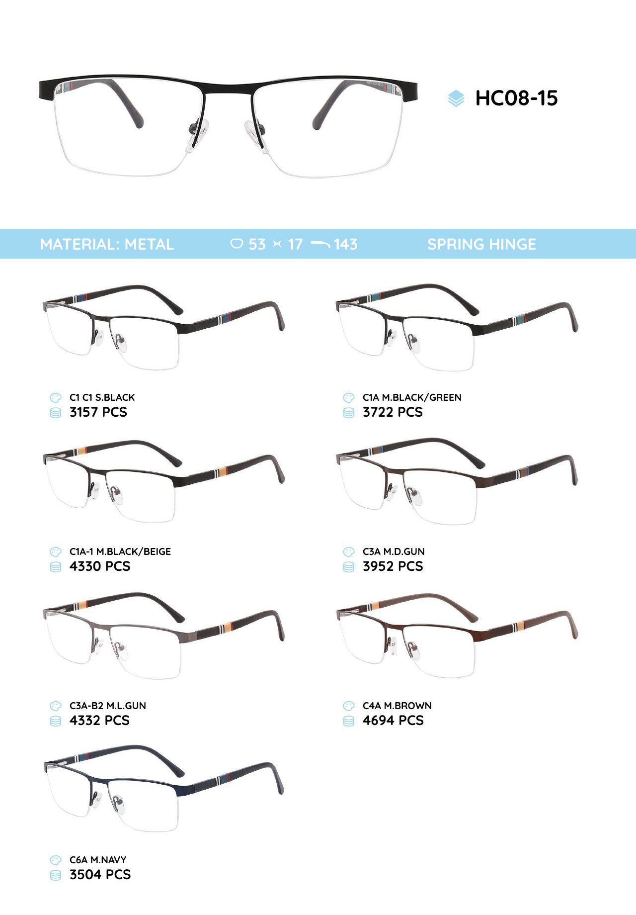 Металлическая оправа с дужками из материала TR-90 HC08-15