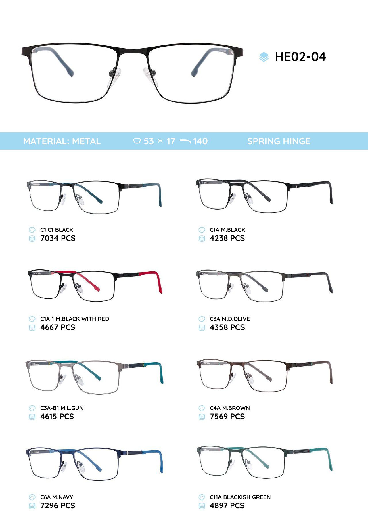 Металлическая оправа с дужками из материала TR-90 HE02-04 HE02-04-NV C6 mix ¥ 37.93 В наличии