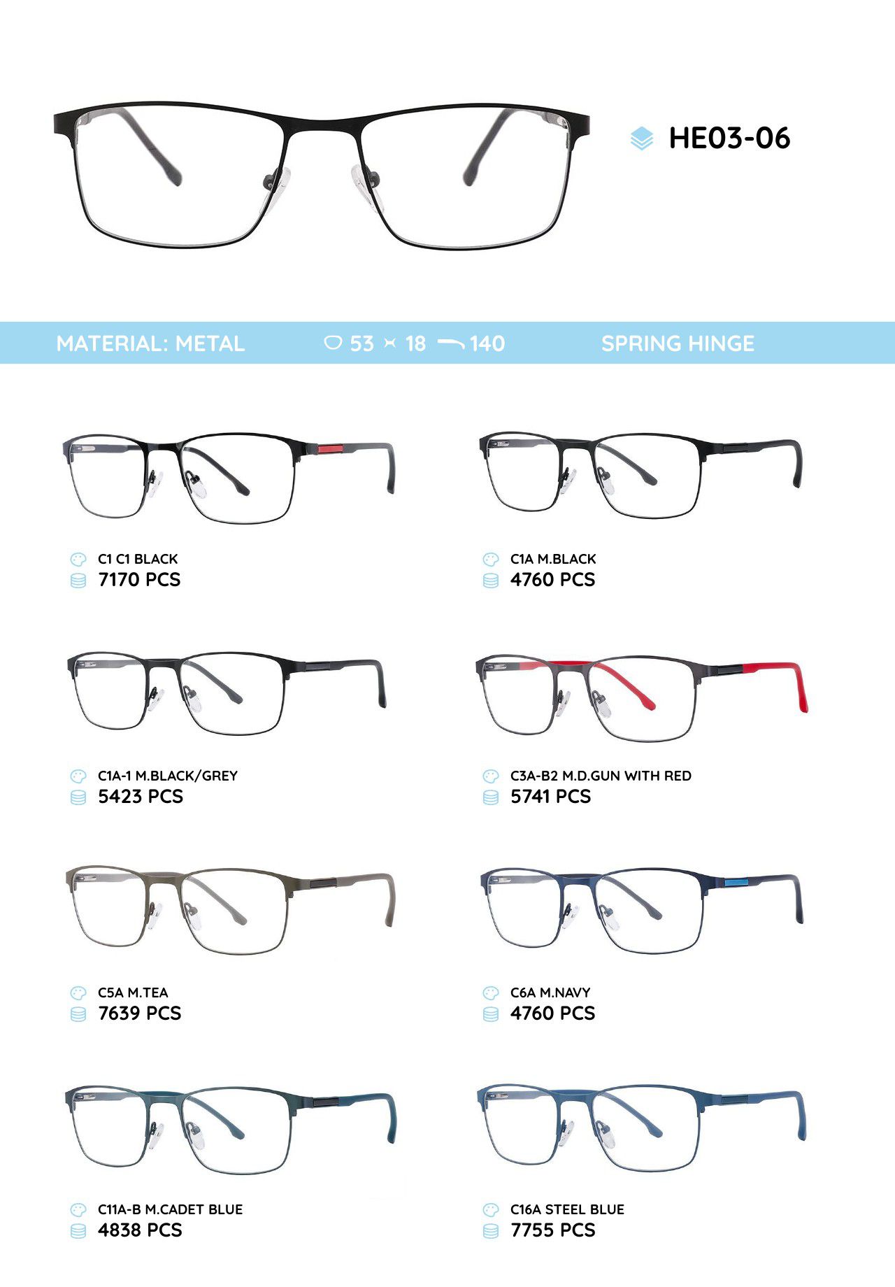 Металлическая оправа с дужками из материала TR-90 HE03-06