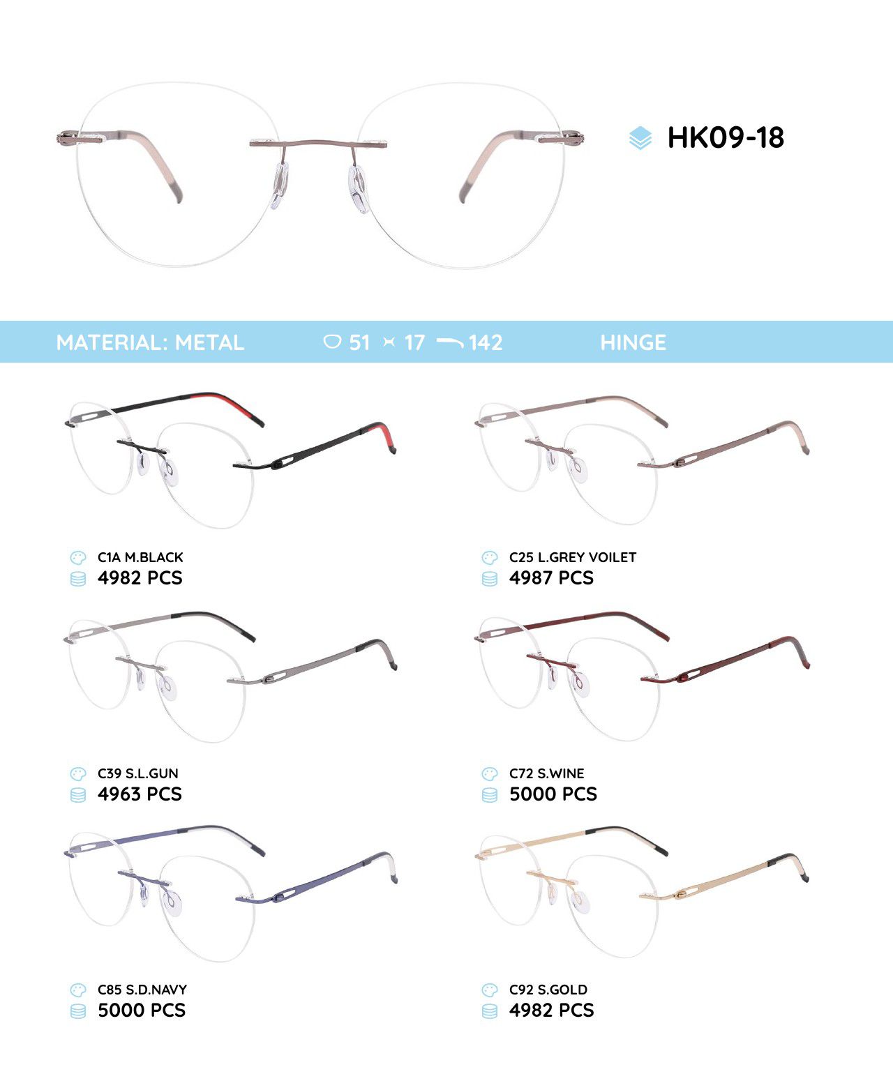 Металлическая безободковая оправа с дужками из пластика TR-90 HK09-18