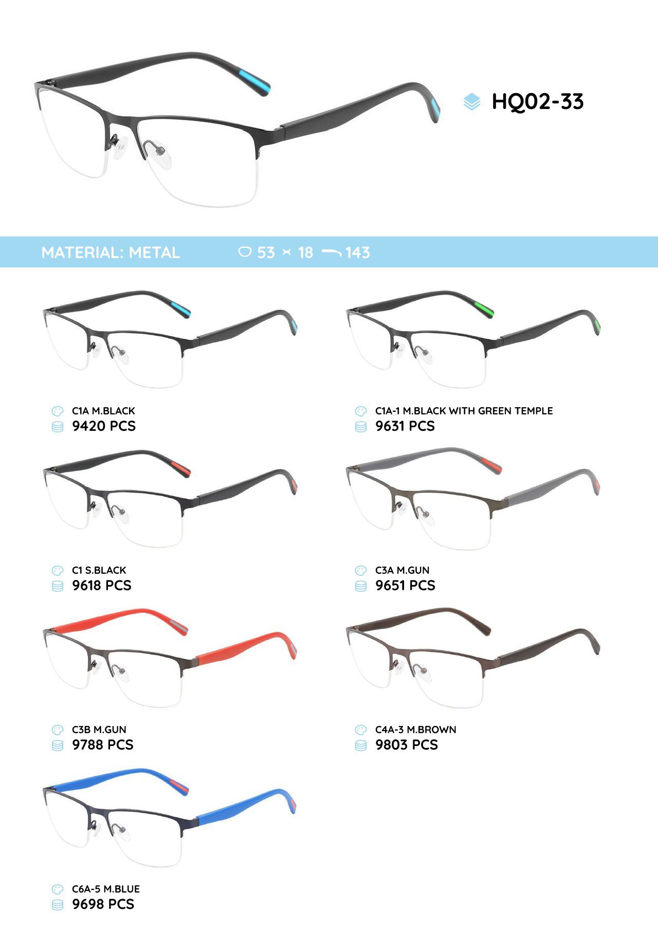 Металлическая оправа с дужками из материала TR-90 HQ02-33