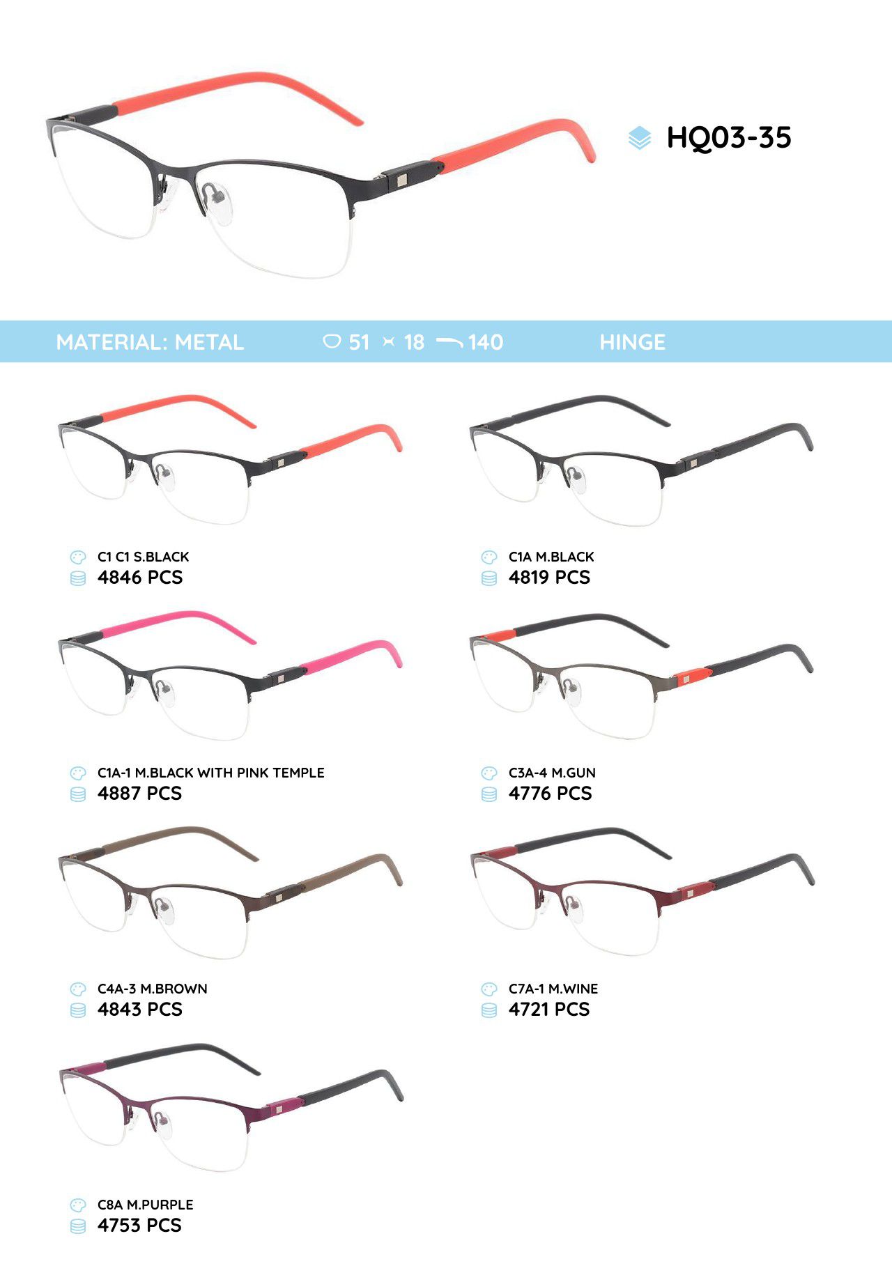 Металлическая оправа с дужками из материала TR-90 HQ03-35 HQ03-35-NV C5 mix ¥ 31.04 В наличии