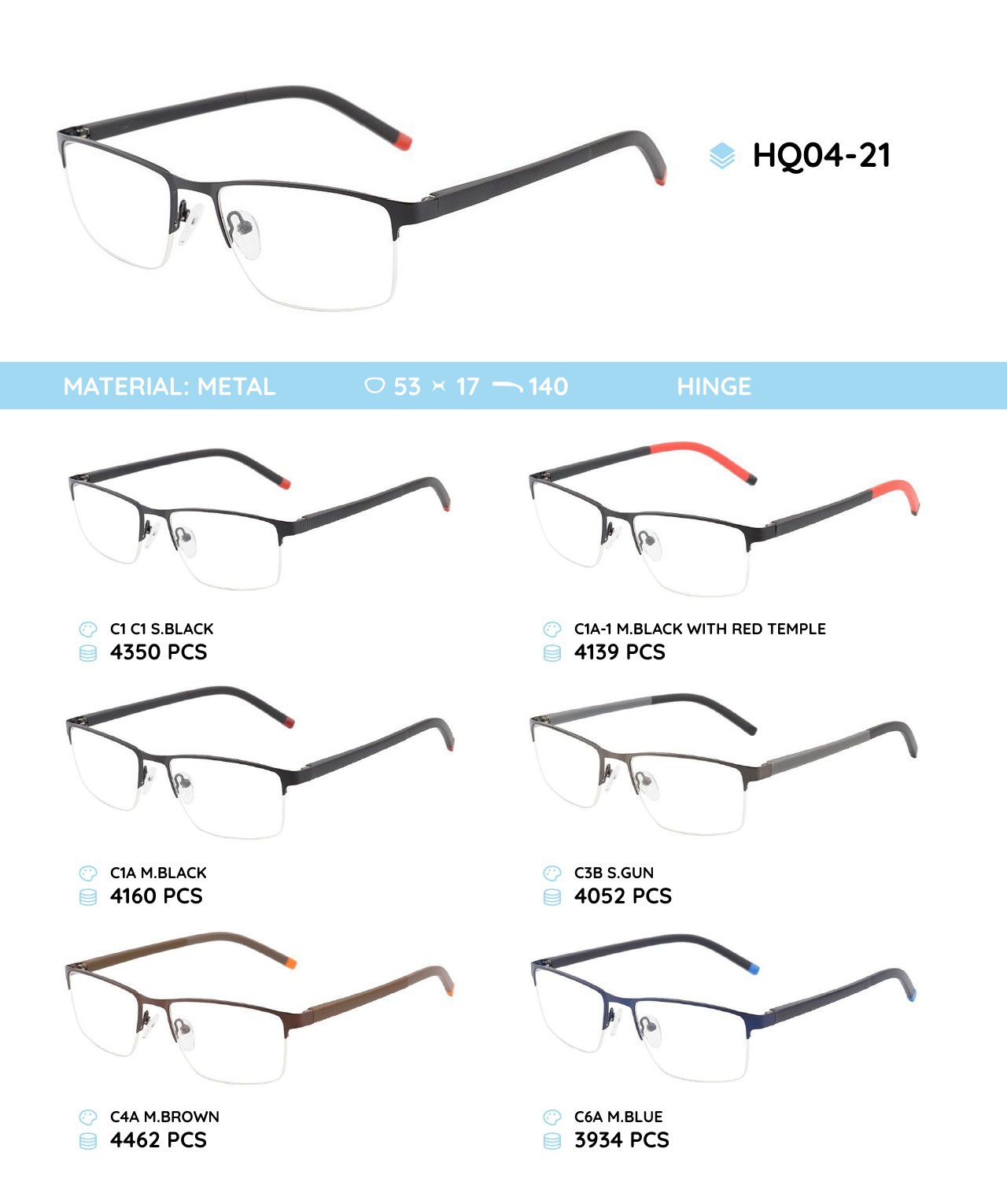 Металлическая оправа с дужками из материала TR-90 HQ04-21