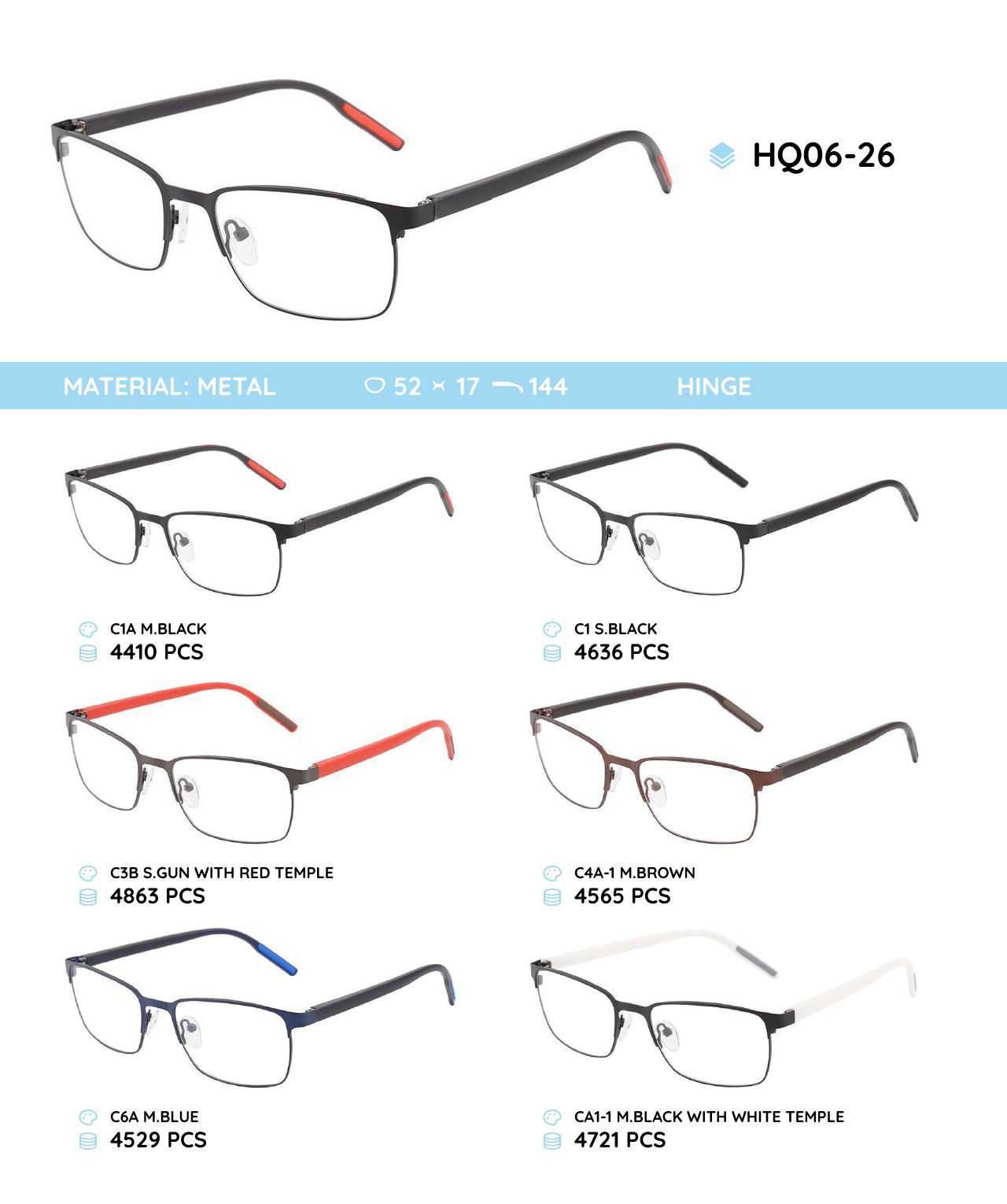 Металлическая оправа с дужками из материала TR-90 HQ06-26