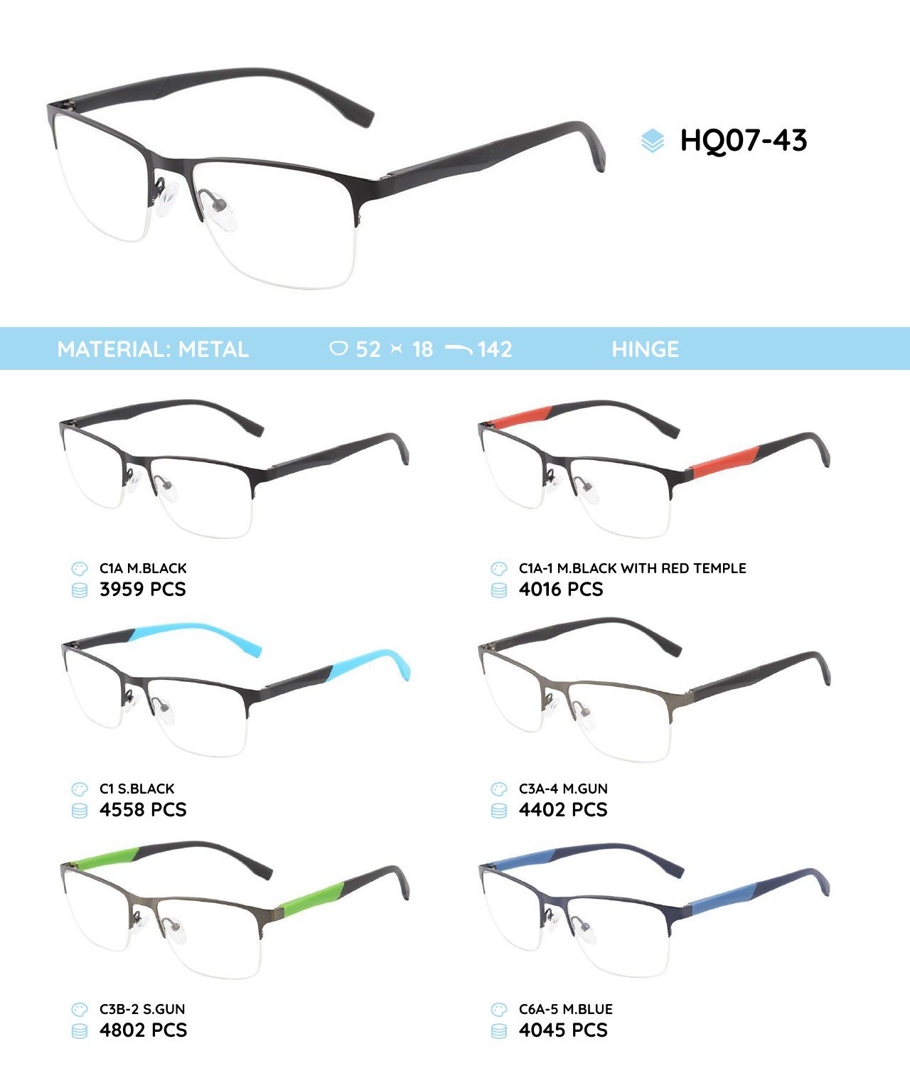 Металлическая оправа с дужками из материала TR-90 HQ07-43
