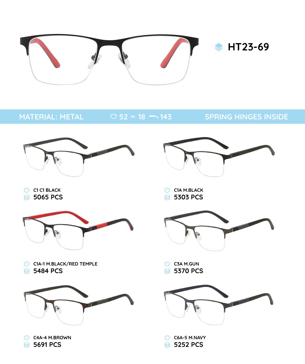 Металлическая оправа с дужками из материала TR-90 HT23-69 HT23-69-NV C6 mix ¥ 31.04 В наличии