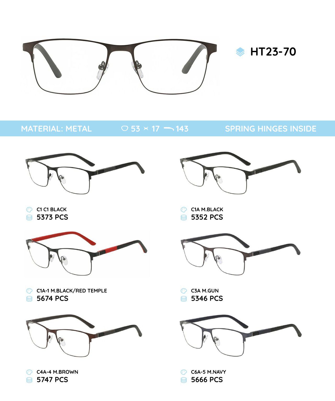 Металлическая оправа с дужками из материала TR-90 HT23-70