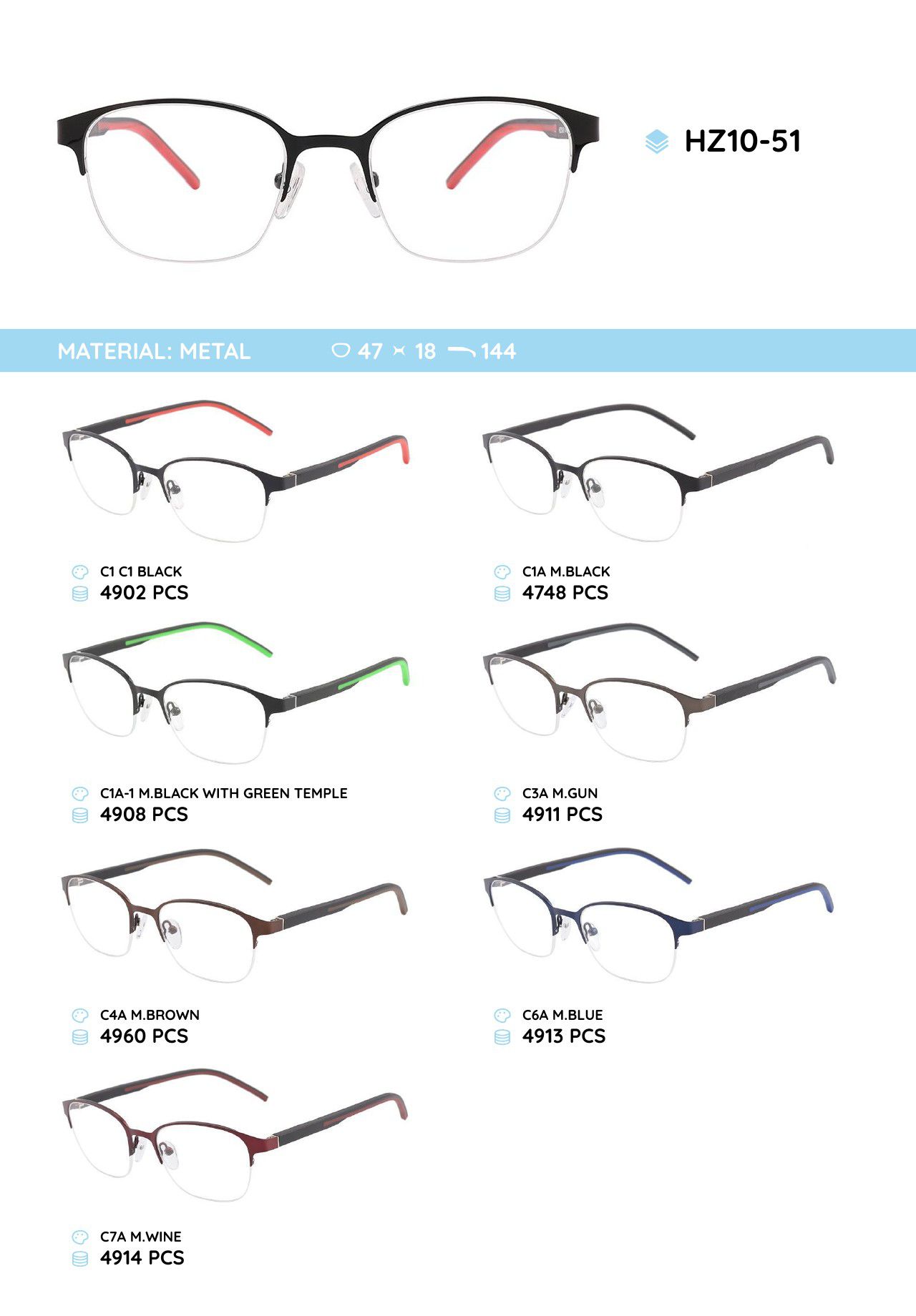 Металлическая оправа с дужками из материала TR-90 HZ10-51