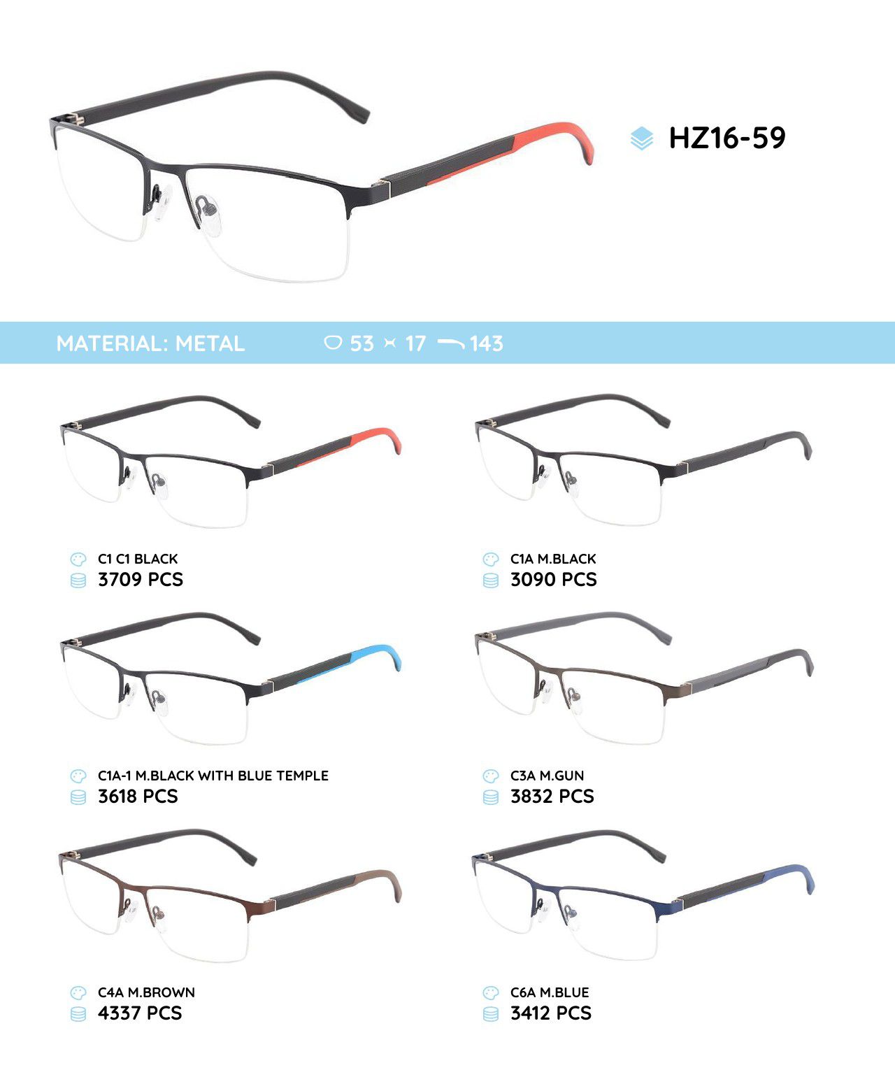 Металлическая оправа с дужками из материала TR-90 HZ16-59
