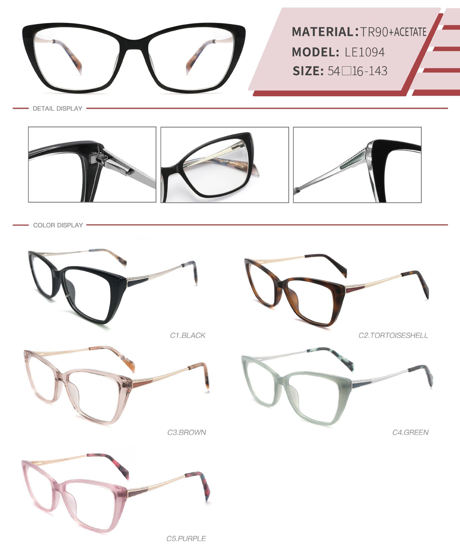 - Материал оправы: пластик TR90, ацетат, металл
