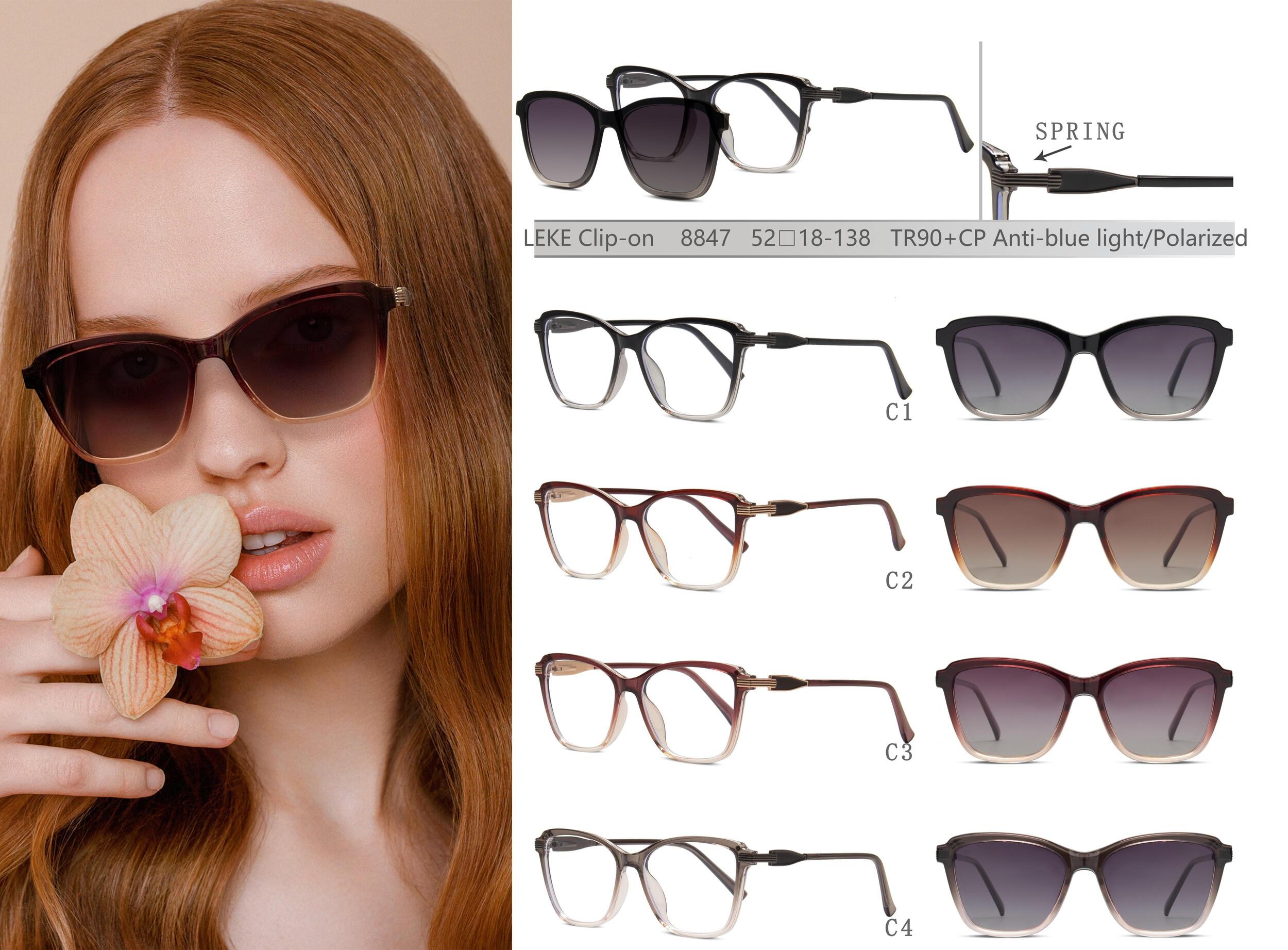 Оправа для очков пластиковая TR90+CP с защитой от синего света, с флексом + поляризационная солнцезащитная насадка (клипон) Leke LK8847
