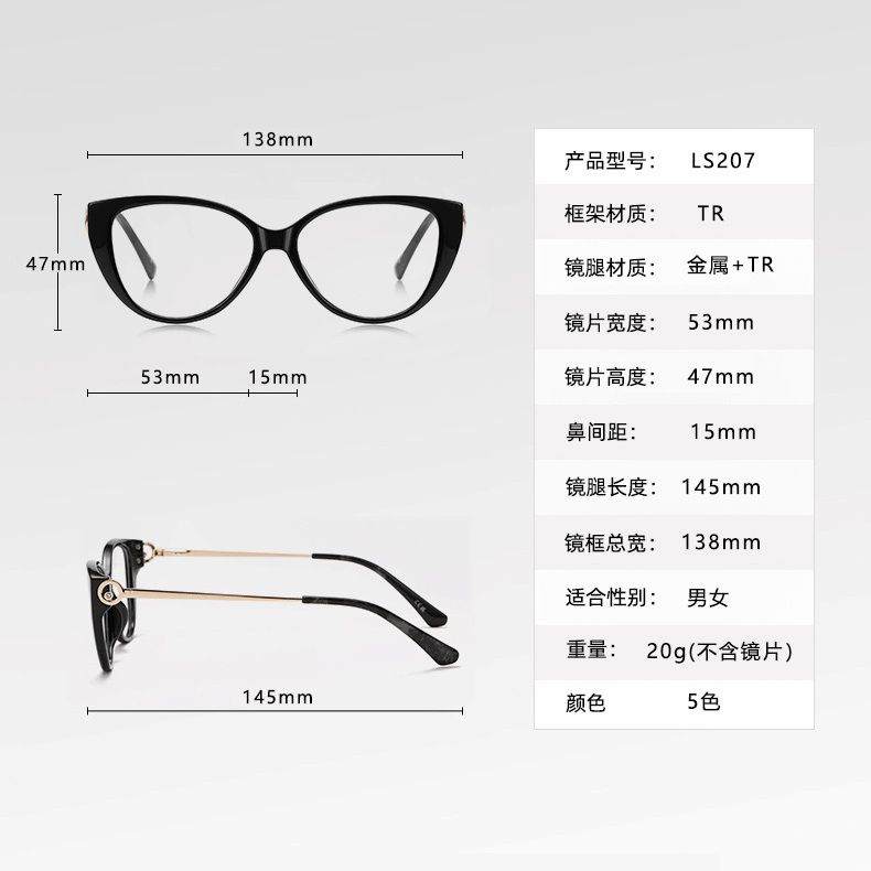 Оправа кошачий глаз пластиковая из материала TR90 + металл, линзы с защитой от ультрафиолета и синего света More LS207