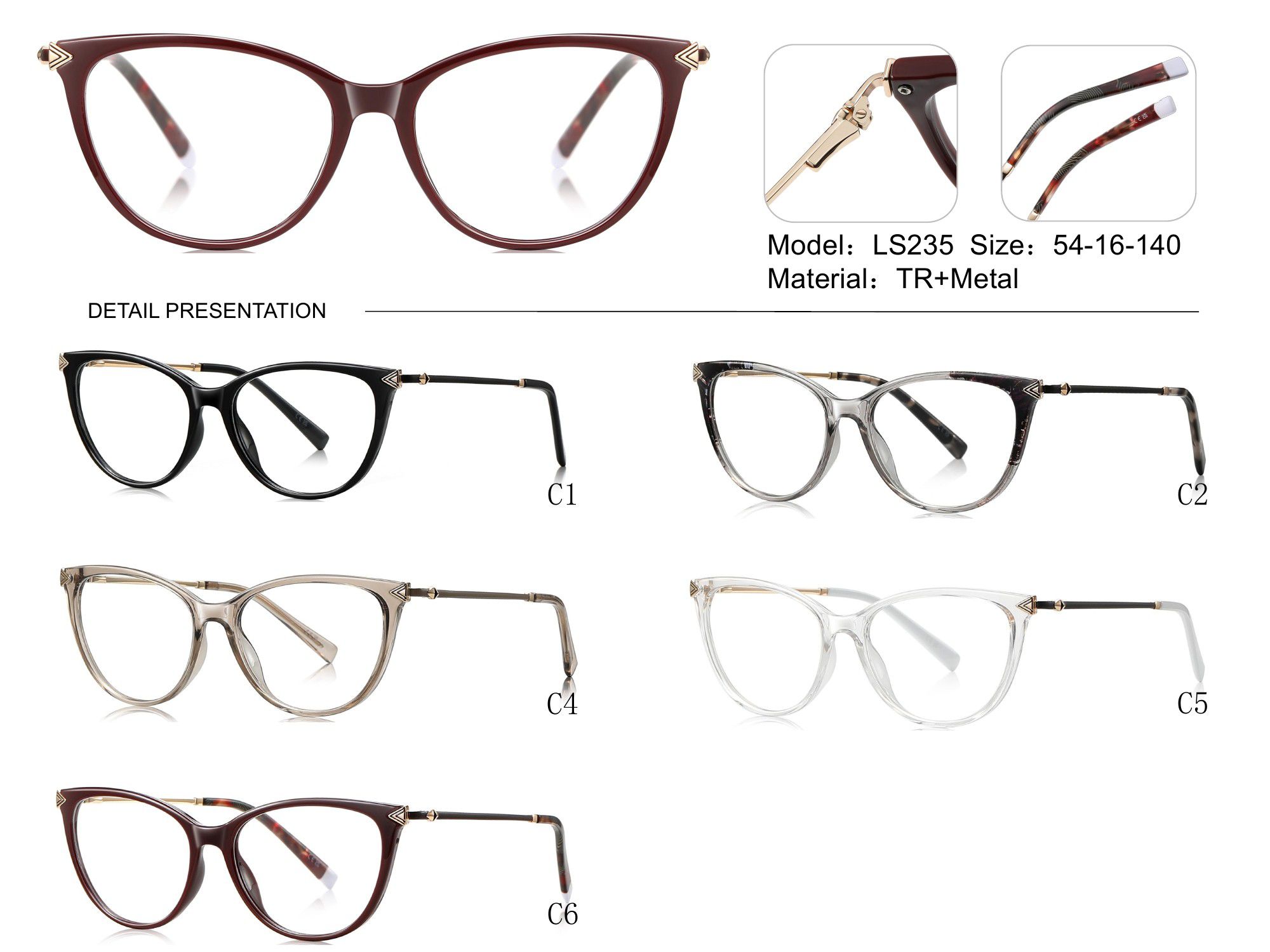 - Материал рамки: пластик TR90+металл