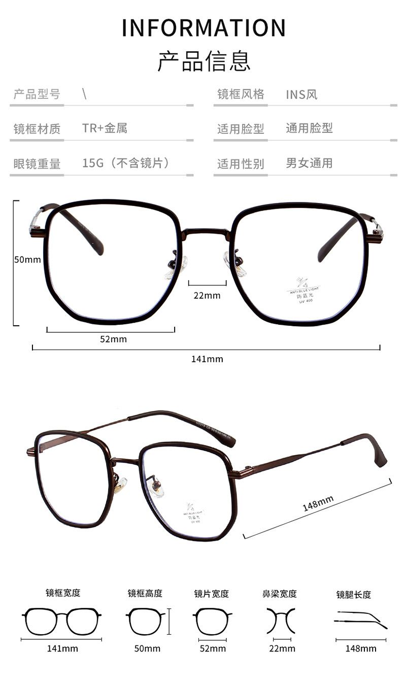 Оправа комбинированная с линзами Blue Ray Cut MAMO M2278