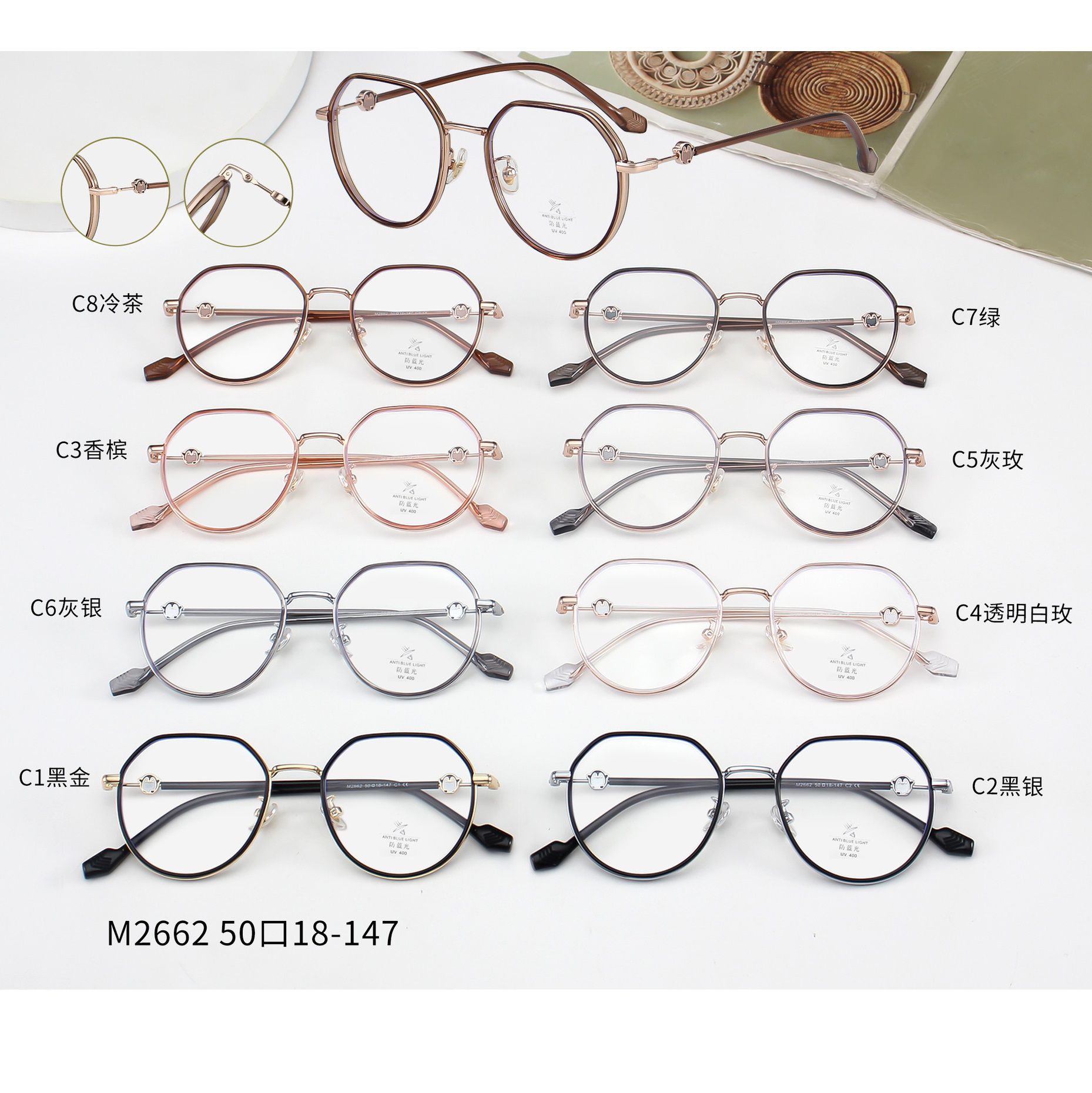 - Материал оправы: металл + пластик TR90