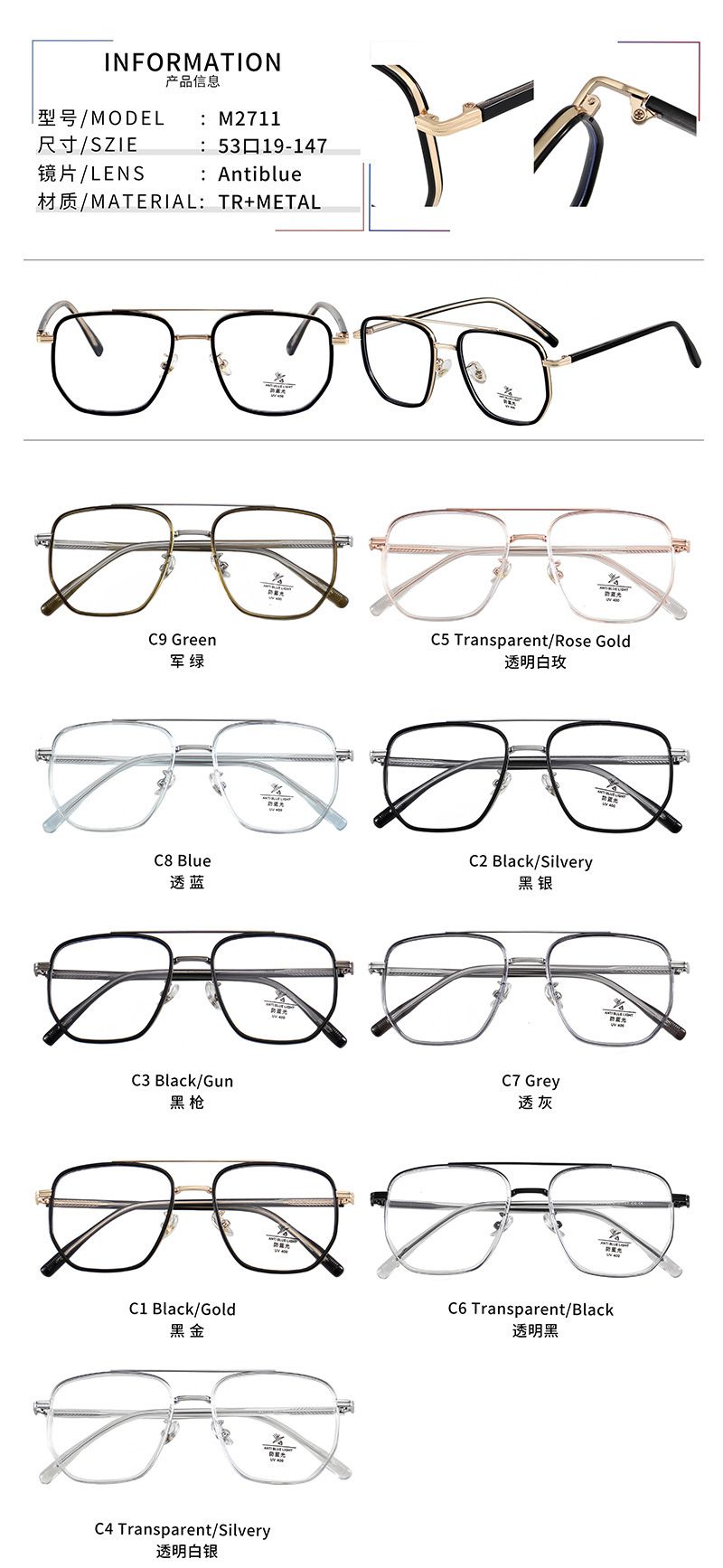 - Материал оправы: пластик TR90 + металл