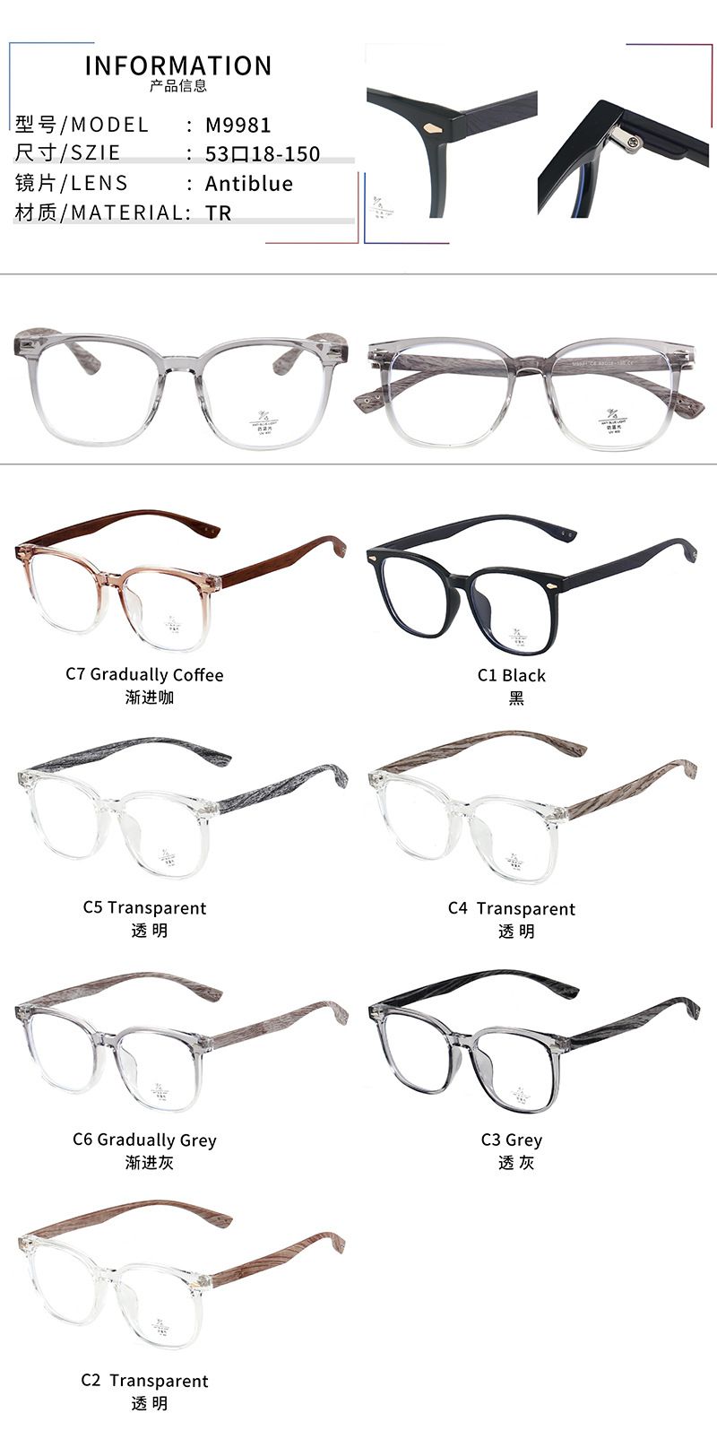 - Материал оправы: пластик TR90, металл