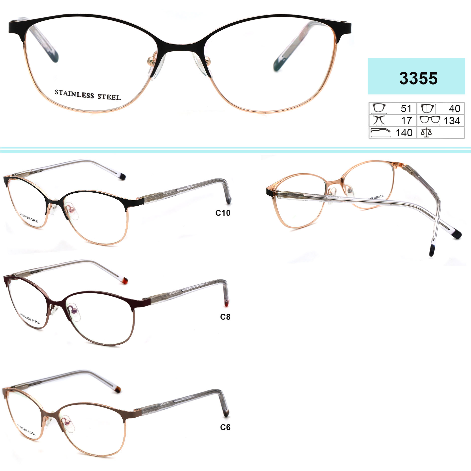 Оправы для очков металлические. Материал сталь (Stainless steel). Оправы хорошо держат свою форму, в тоже время эластичны в работе при изготовлении очков, высокого качества, имеет приятные тактильные свойства, устойчивы к повреждениям, легки, обладают гипоаллергенными свойствами. Многие модели декорированы стразами, с элегантными заушниками и флексами (flex). Модный дизайн. Данная коллекция оправ высокого качества, проходит штучный контроль. В нашем магазине дана низкая цена на товар данной категории, для оптовой продажи. Стандарт CE (европейский стандарт качества)